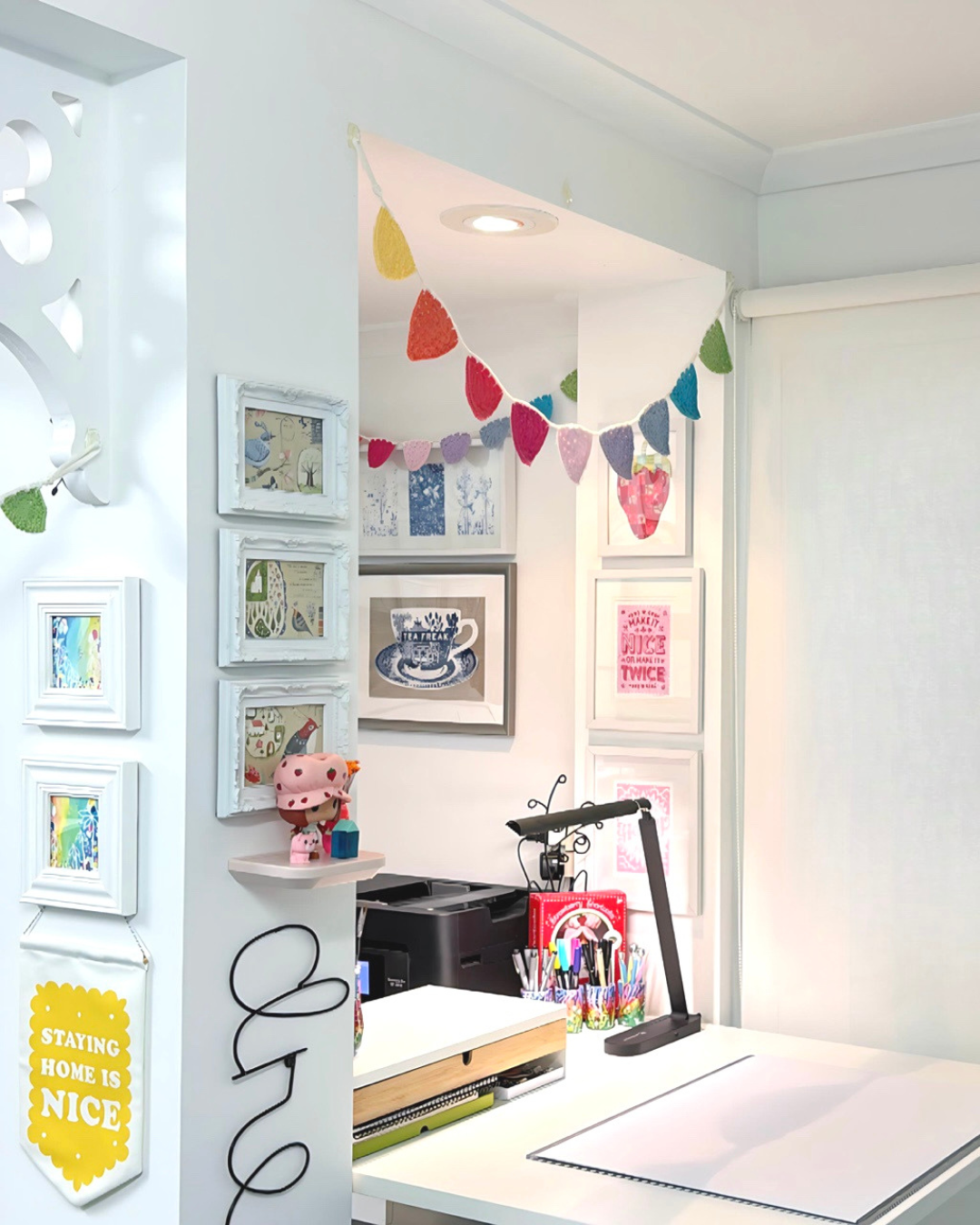 My Studio is located on the ground level of our beautiful Queenslander home which we have been lovingly restoring to her former glory for the last 14 years. There are big glass doors that look out over our tropical gardens - or jungle as is often the case. Inside, the Studio walls are decorated with Artworks from many of my favourite artists. Visitors to the Studio are always amazed & delighted by all of the colour I choose to surround myself with. One of my claims to fame is the time Marie Kondo shared a photo of my Studio walls to her Instagram!