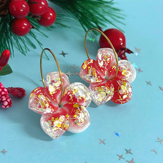 FESTIVE FRANGIPANI SPINNERS : Choose your colour : Handmade Resin DROP Earrings