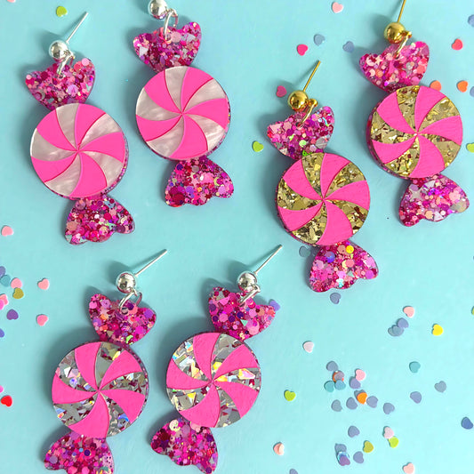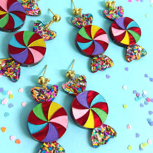 One of a kind : HELLO CHRISTMAS SWEETIE BON BONS : Choose your colour : Handmade Resin & Acrylic DROP Earrings
