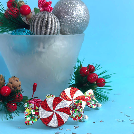 HELLO CHRISTMAS SWEETIE BON BONS : Peppermints : Handmade Resin & Acrylic DROP Earrings