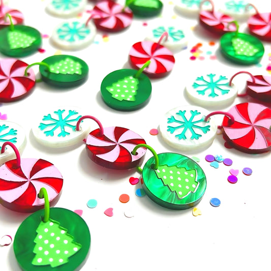 HELLO CHRISTMAS LOLLY DROPS : Handpainted Acrylic DROP Earrings