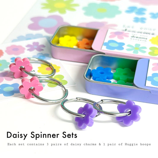 PETITE DAISY SPINNER SETS : 3 pairs of daisies + 1 pair of hoops : Choose warm or cool set : Handmade Acrylic DROP Earrings