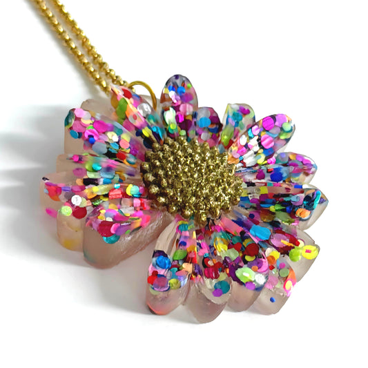 Confetti Rainbow Daisy : Handmade Resin PENDANT