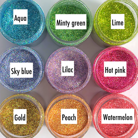 Ultra fine Fluro Holographic Glitter : choose your colour : large black jar : Destash item