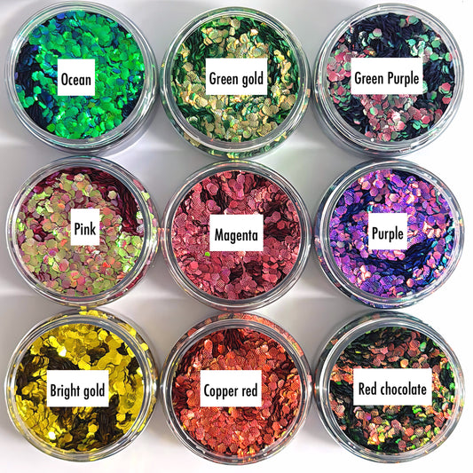 3mm HONEYCOMB HEX HIGH SHINE IRIDESCENT GLITTER : choose you colour : large black jar : Destash item