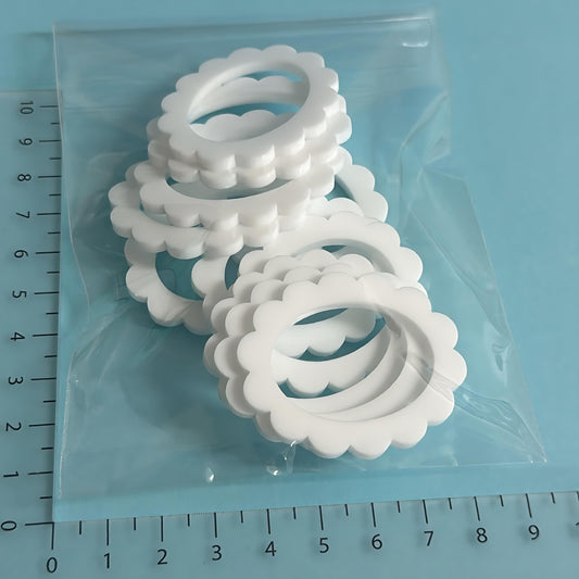 45mm SCALLOPED FRILL OVAL : 3mm white gloss Acrylic components : Destash item