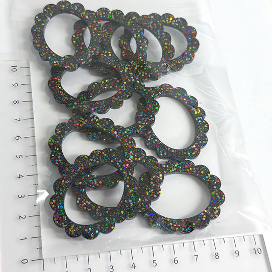 45mm Scallop ovals HLF BLACK RAINBOW : Statement Earring or pendant Resin components : Destash item