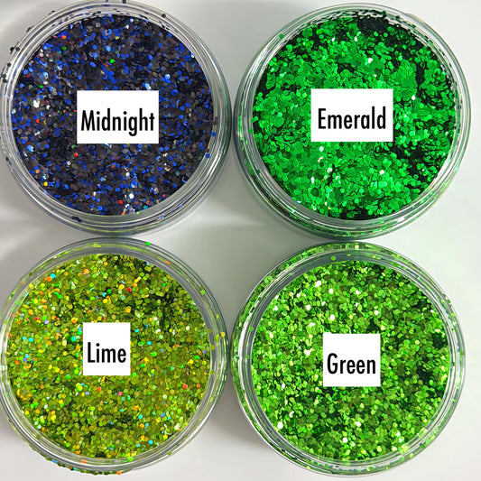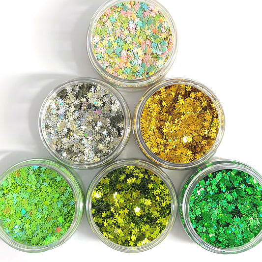 LUCKY CLOVER SHAMROCKS LEAF : Holographic Glitter : choose your colour : large black jar : Destash item