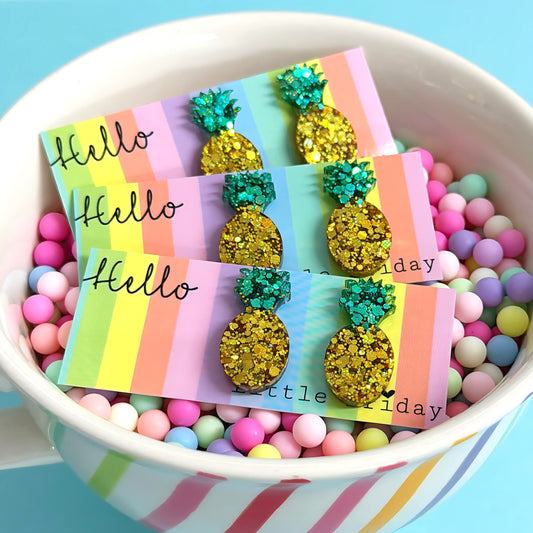 SUMMER GOLD PINEAPPLES : Handmade Resin Stud Earrings