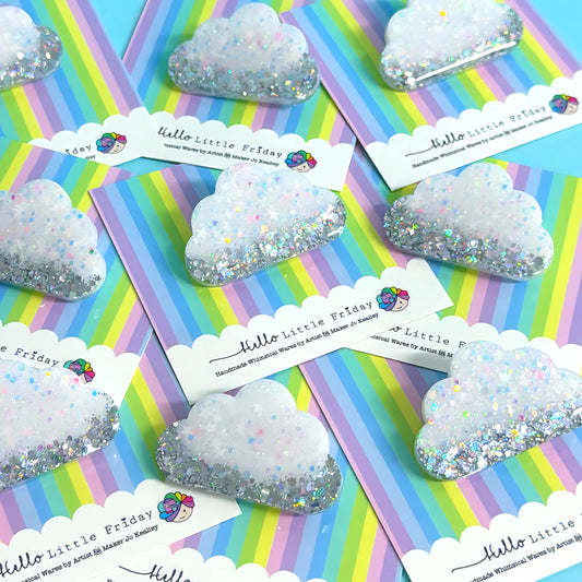 SILVER LININGS : MIDI BROOCH : Winter Silver shimmer : Handmade Resin Brooch