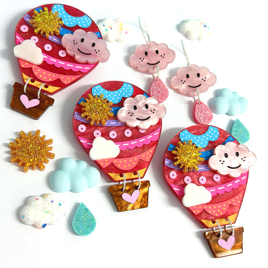 LET’S FLY AWAY : Raspberry Skies : HOT AIR BALLOONS : Handmade Acrylic Drop Earrings by
