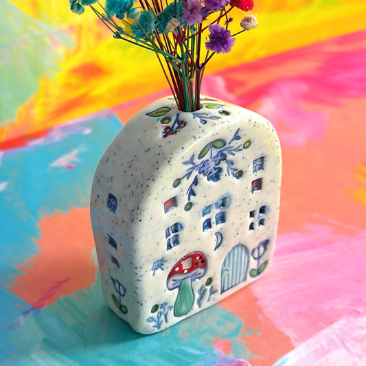 Hello Little FAERIE HOME Vase : 6 : Handpainted Ceramic Home Vase by Jo Kealley