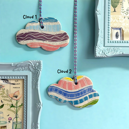 Hello Little CLOUD ORNAMENTS : Handpainted Ceramic Wall Art by Jo Kealley