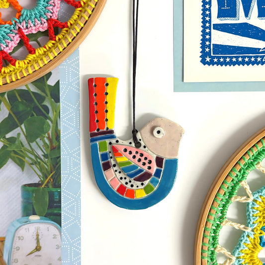 Hello Little BIRDIE ORNAMENT : Choose your design : Handpainted Ceramic Wall Art by Jo Kealley