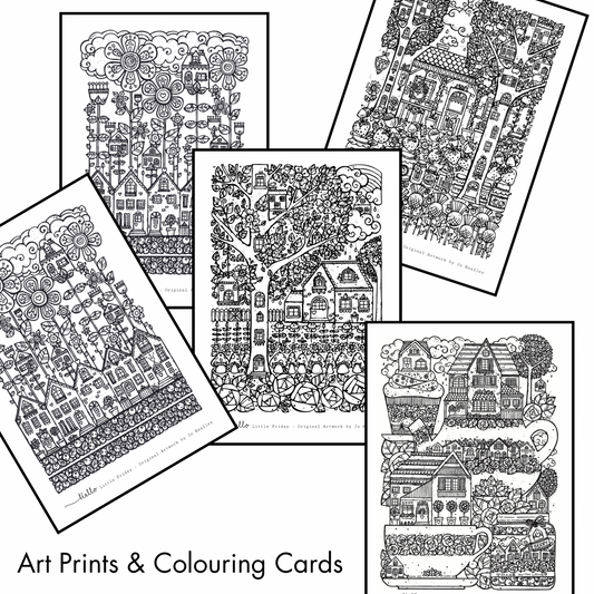 ART PRINTS & COLOURING CARDS : Set of 5 A5