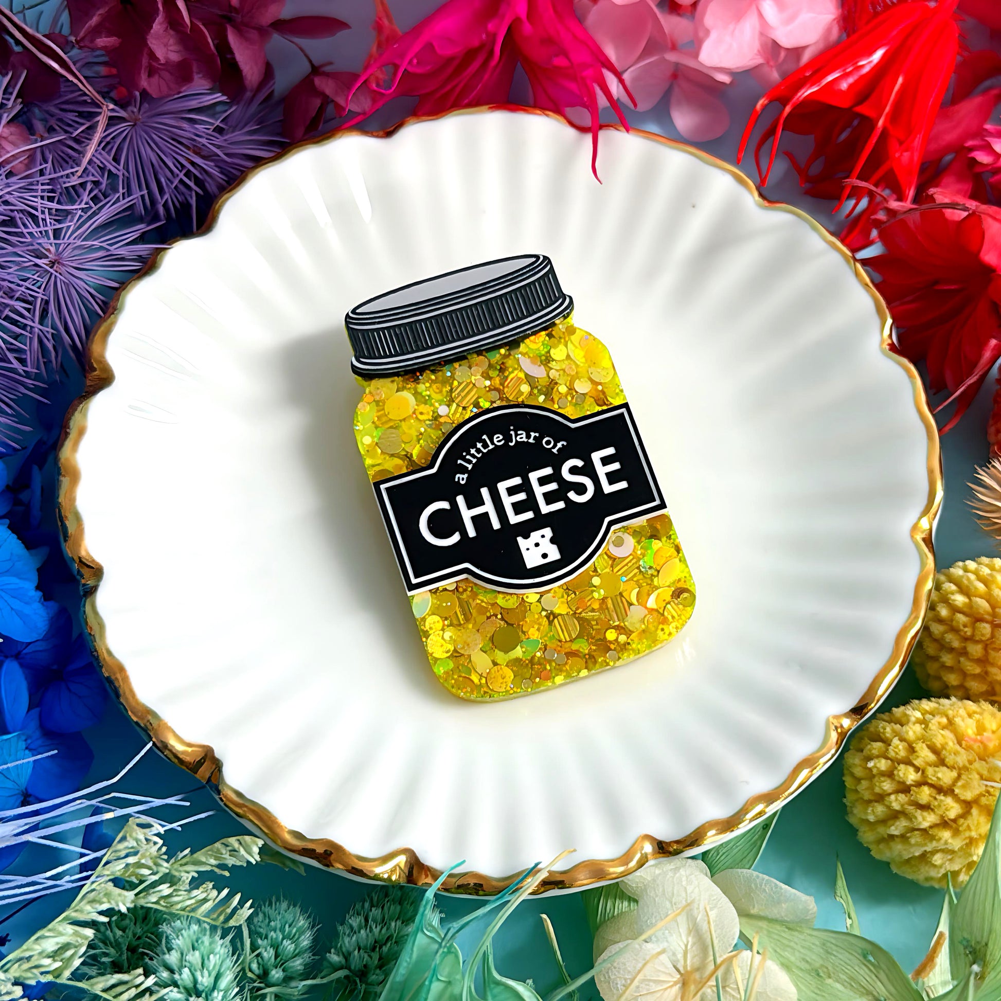 A LITTLE JAR OF : CHEESE : Handmade Resin & Acrylic BROOCH