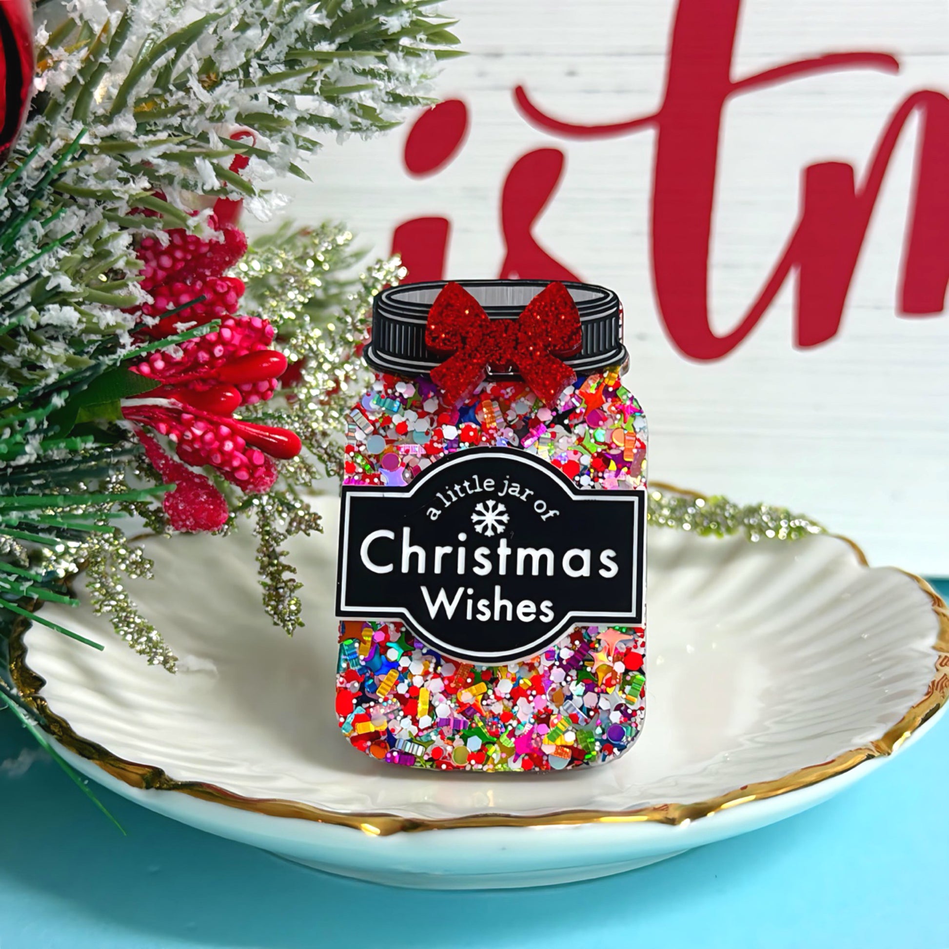 A LITTLE JAR OF : CHRISTMAS WISHES : Rainbow Tinsel : Handmade Resin & Acrylic BROOCH