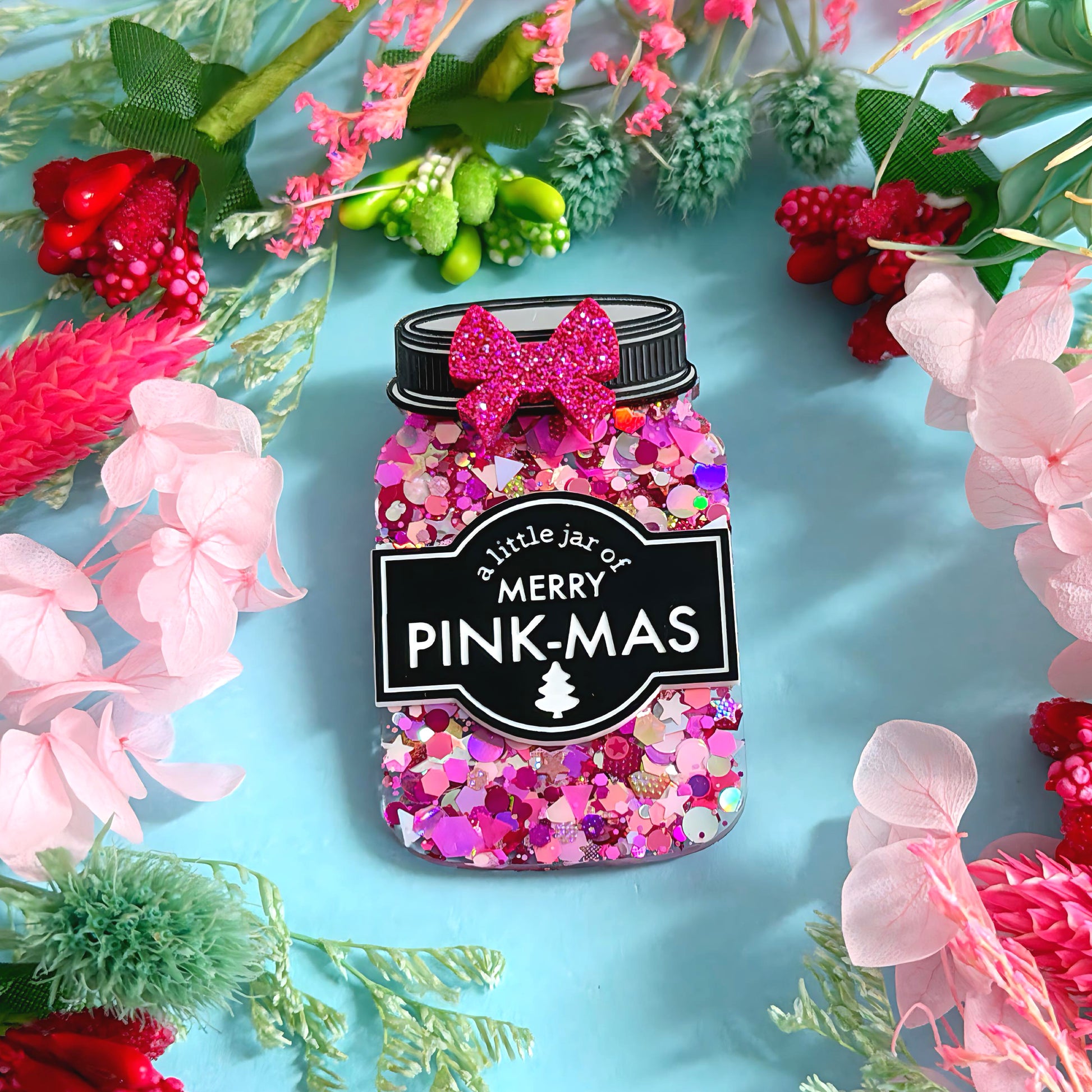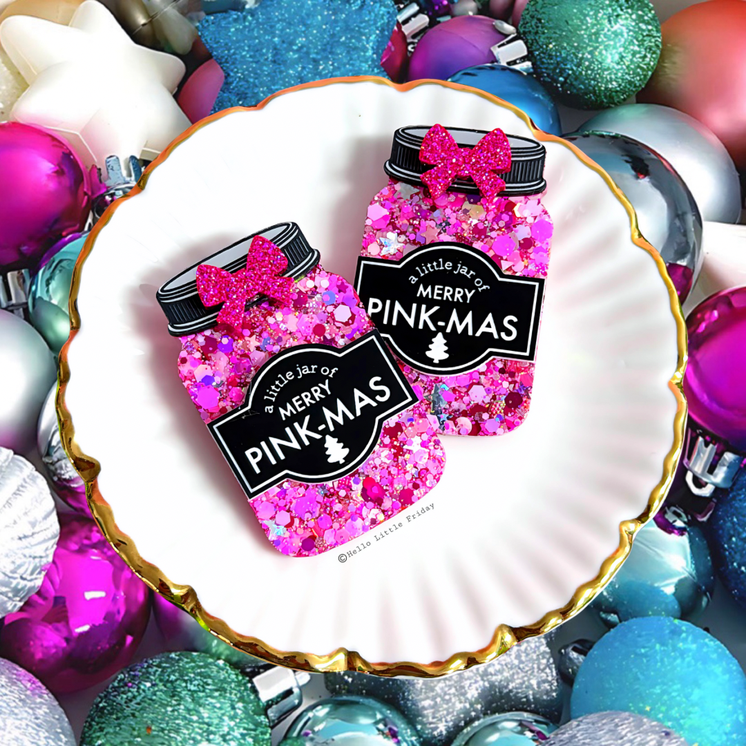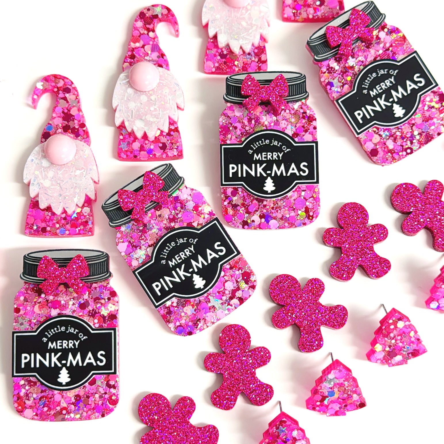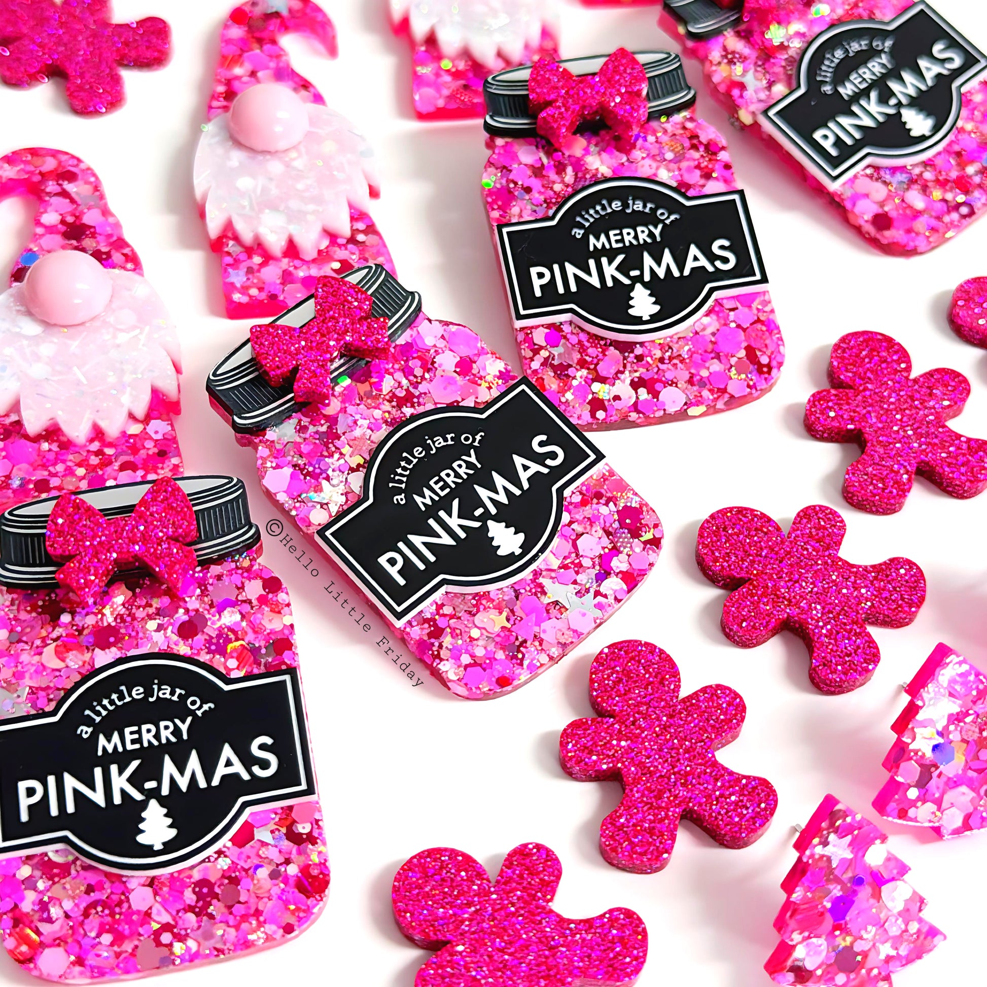 A LITTLE JAR OF : MERRY PINK-MAS : Handmade Resin & Acrylic BROOCH