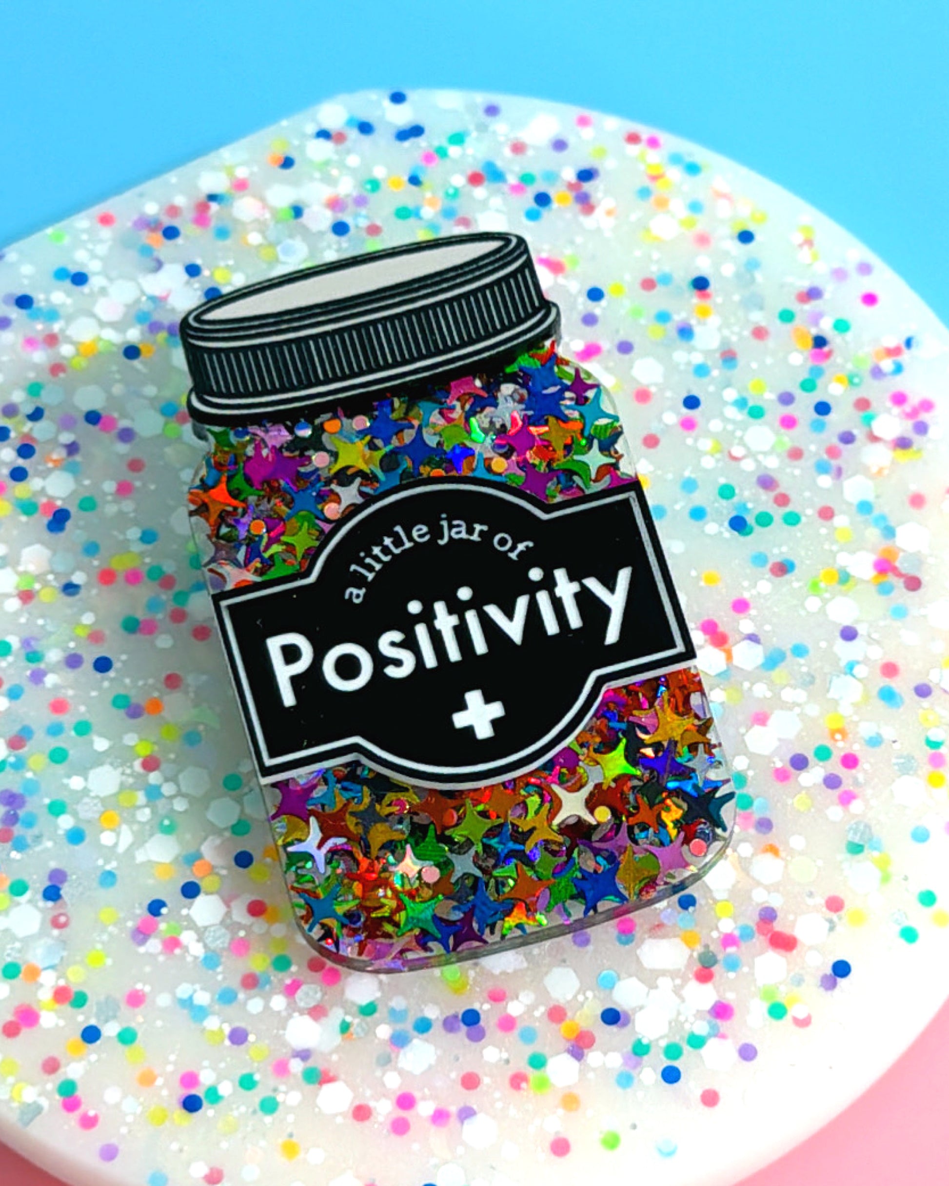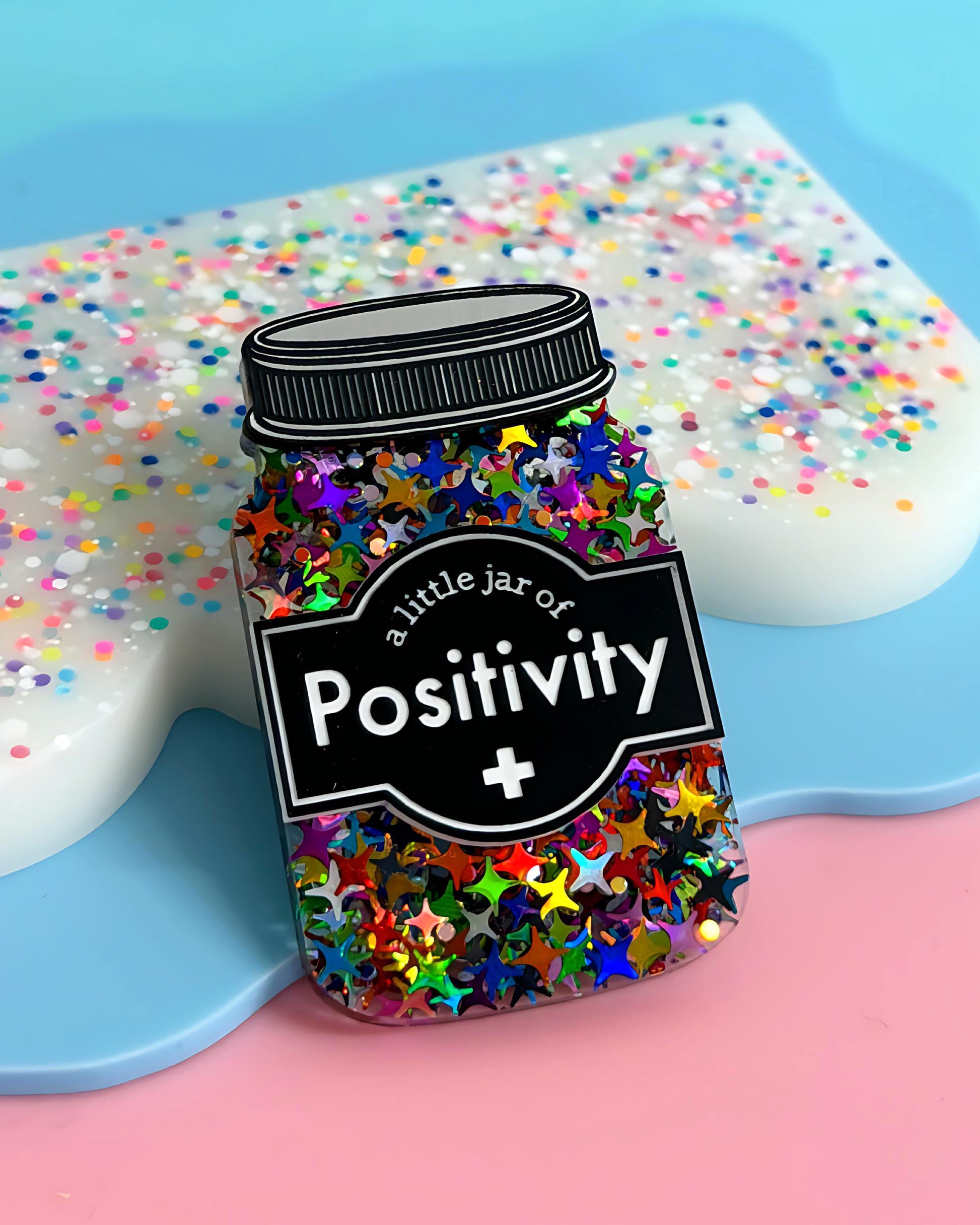 A LITTLE JAR OF : POSITIVITY : Handmade Resin & Acrylic BROOCH
