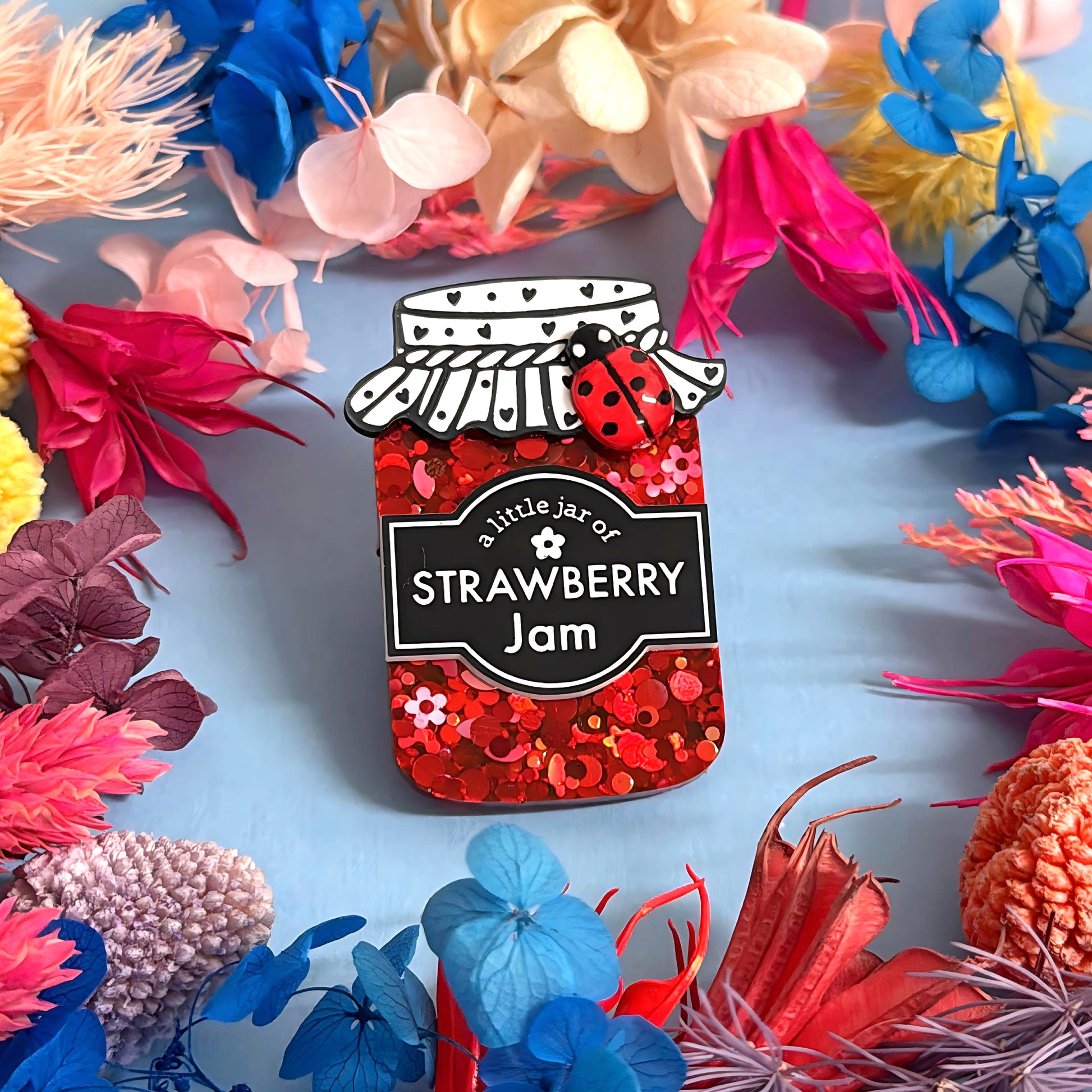 A LITTLE JAR OF : STRAWBERRY JAM : Handmade Resin & Acrylic BROOCH