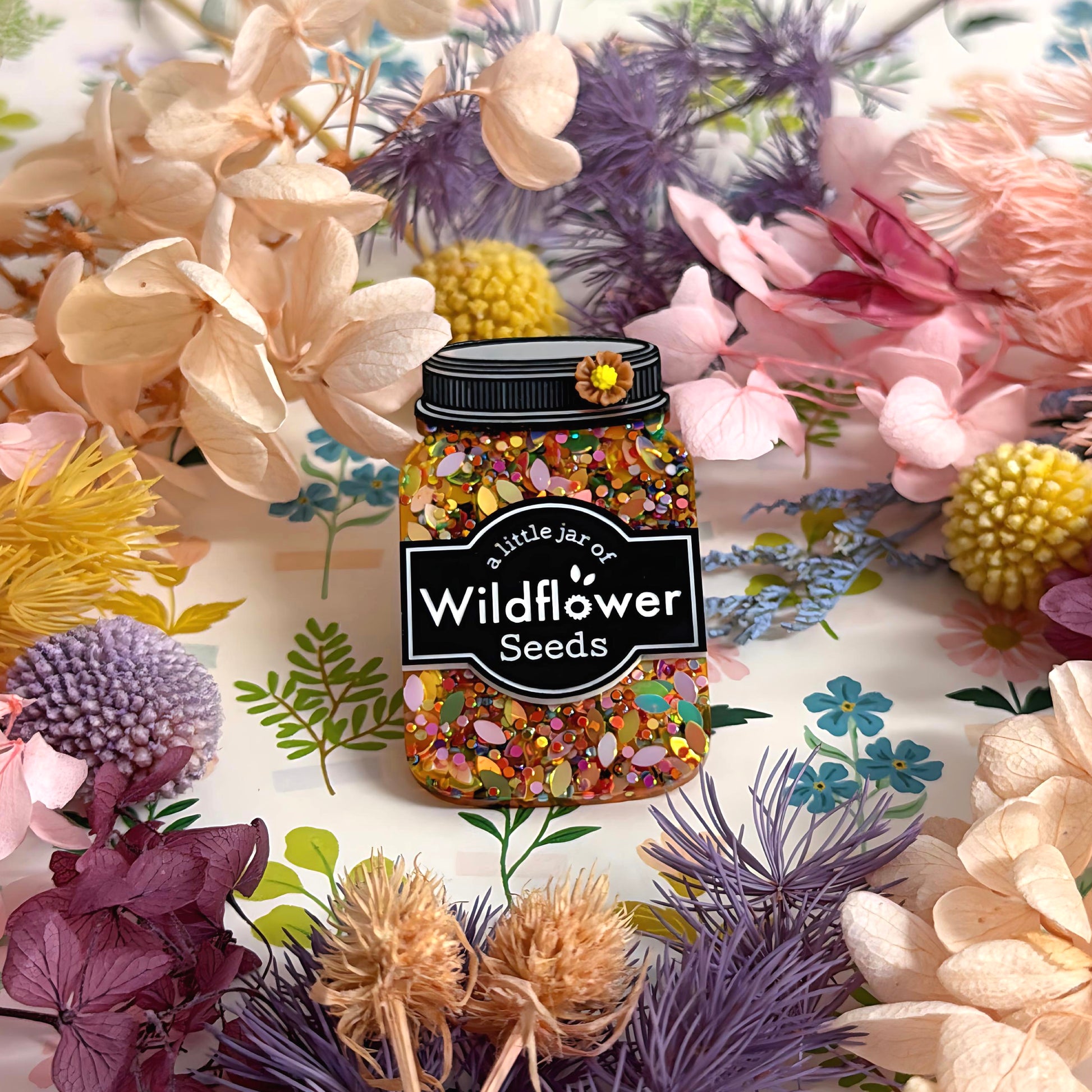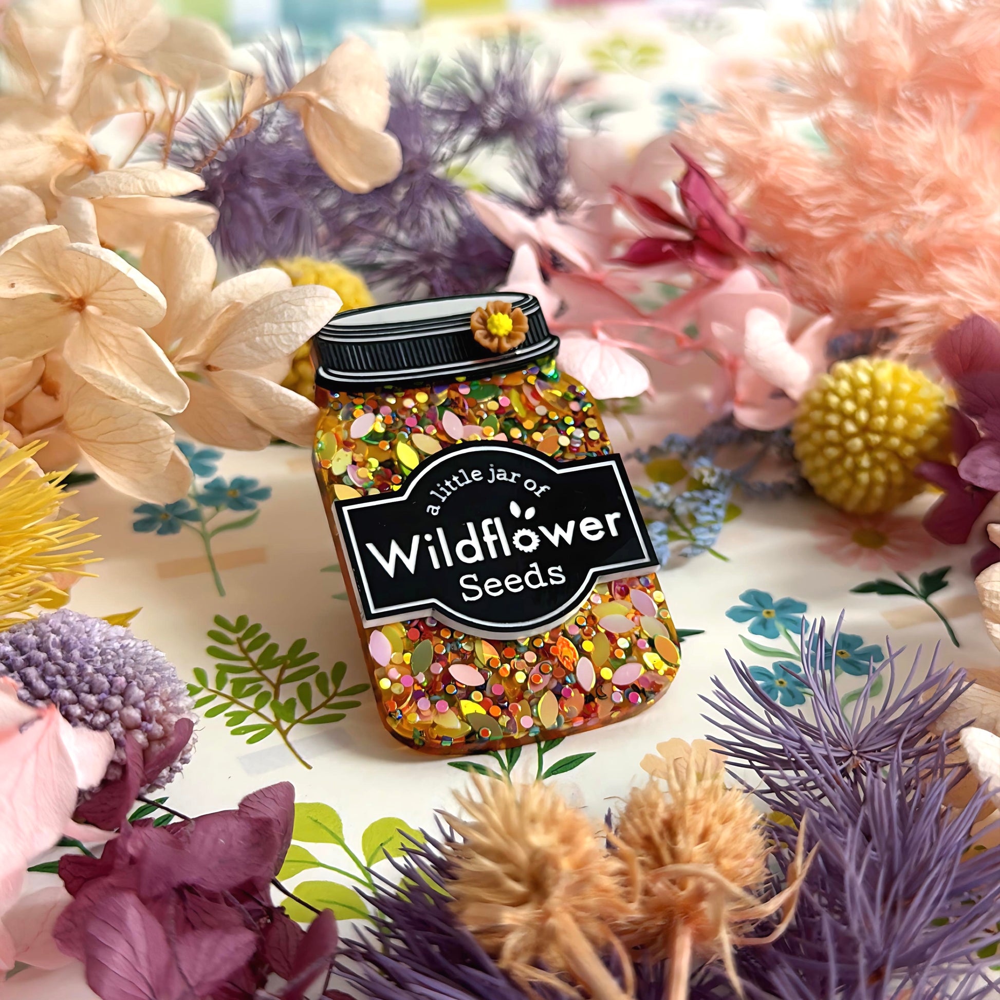 A LITTLE JAR OF : WILDFLOWER SEEDS : Handmade Resin & Acrylic BROOCH