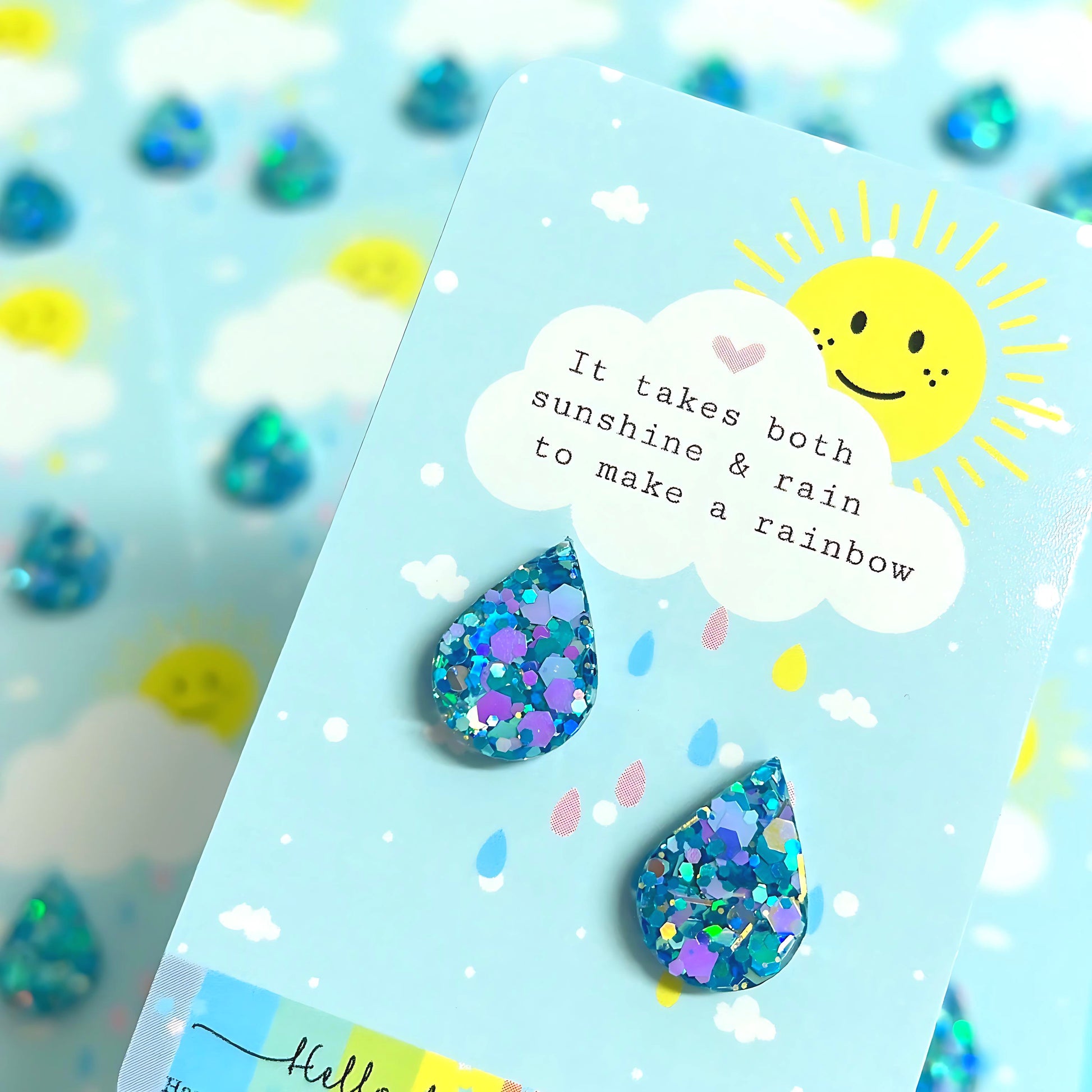 AQUAMARINE SHIMMER RAINDROPS : Handmade Resin STUD Earrings