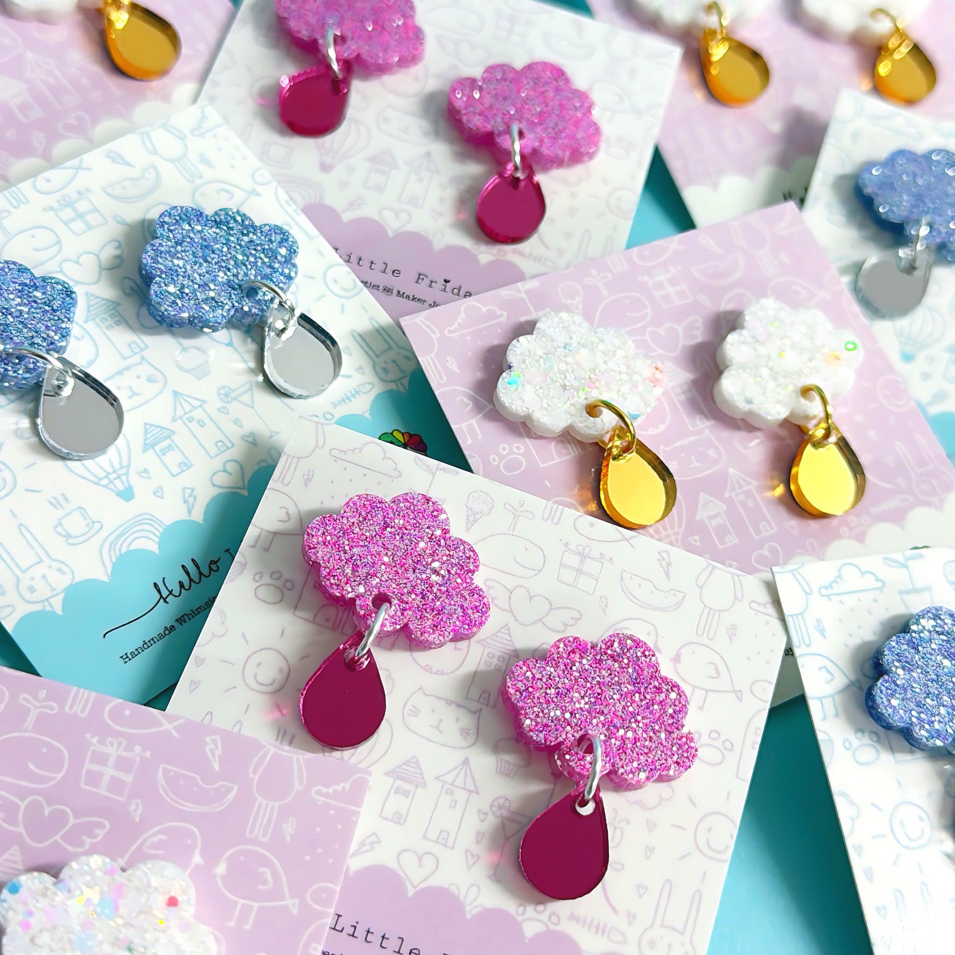 BABY CLOUDS : Choose your colour : Handmade Resin & Acrylic Stud-top DROP Earrings