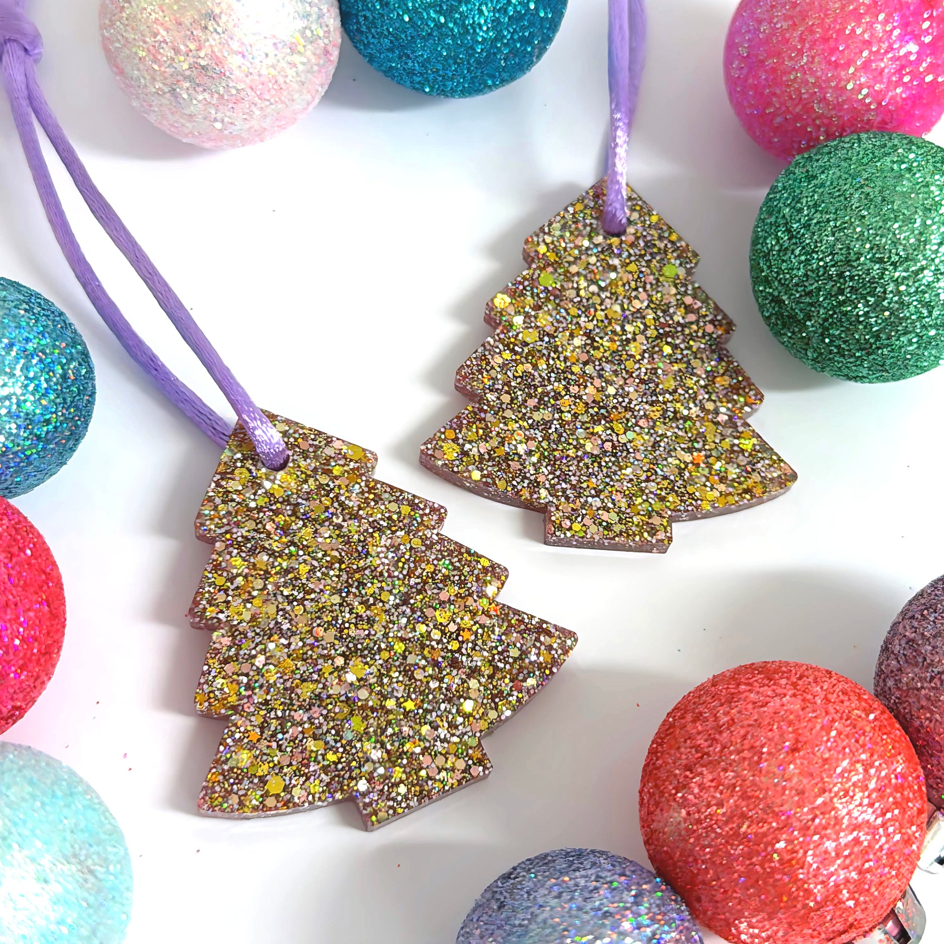 CHRISTMAS TREE : GOLDEN STARDUST : Handmade Resin Tree Ornaments