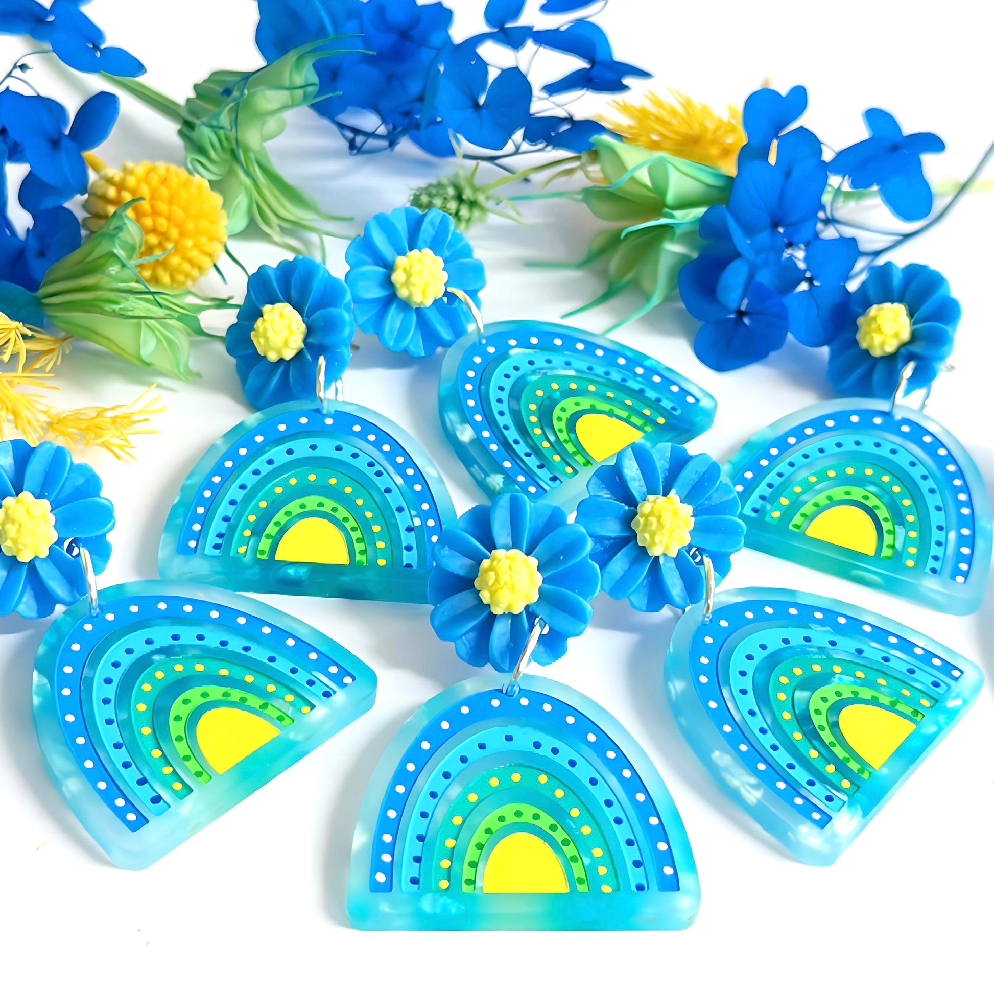 DAISY BOWS : Lemon Lime Blue : Handmade Acrylic Stud-top DROP Earrings