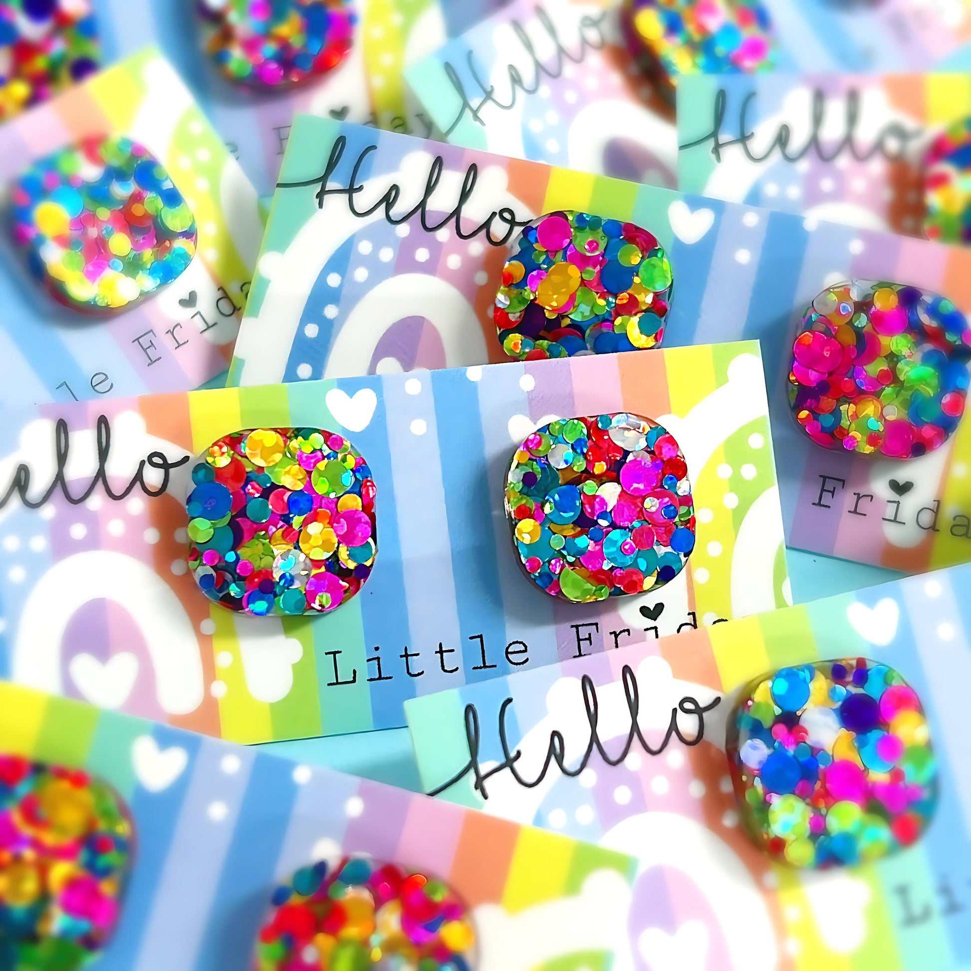 DISCO CUBES : RAINBOW : Handmade Resin STUD Earrings