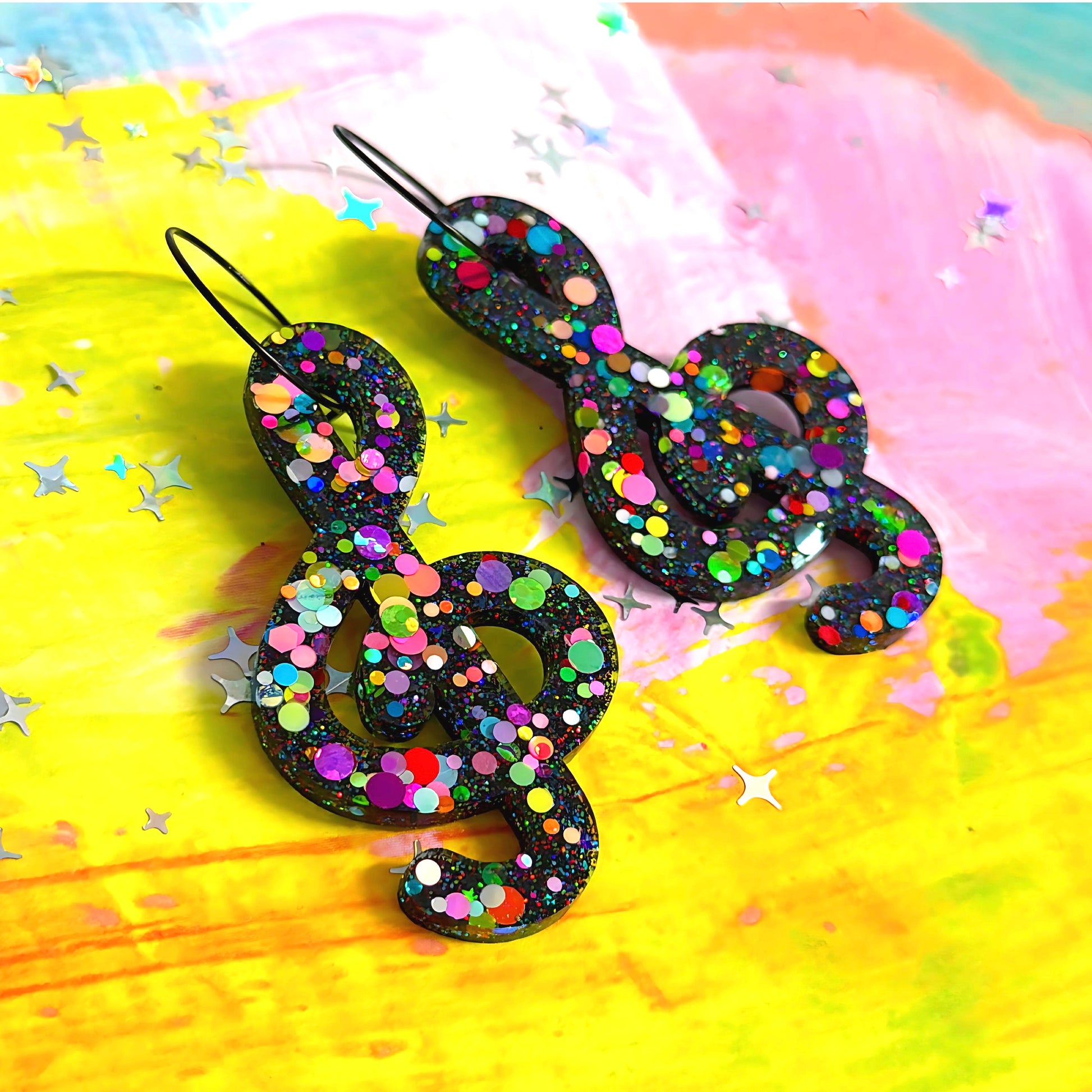 DISCO MUSIC TREBLE CLEFT : Handmade Resin DROP Earrings