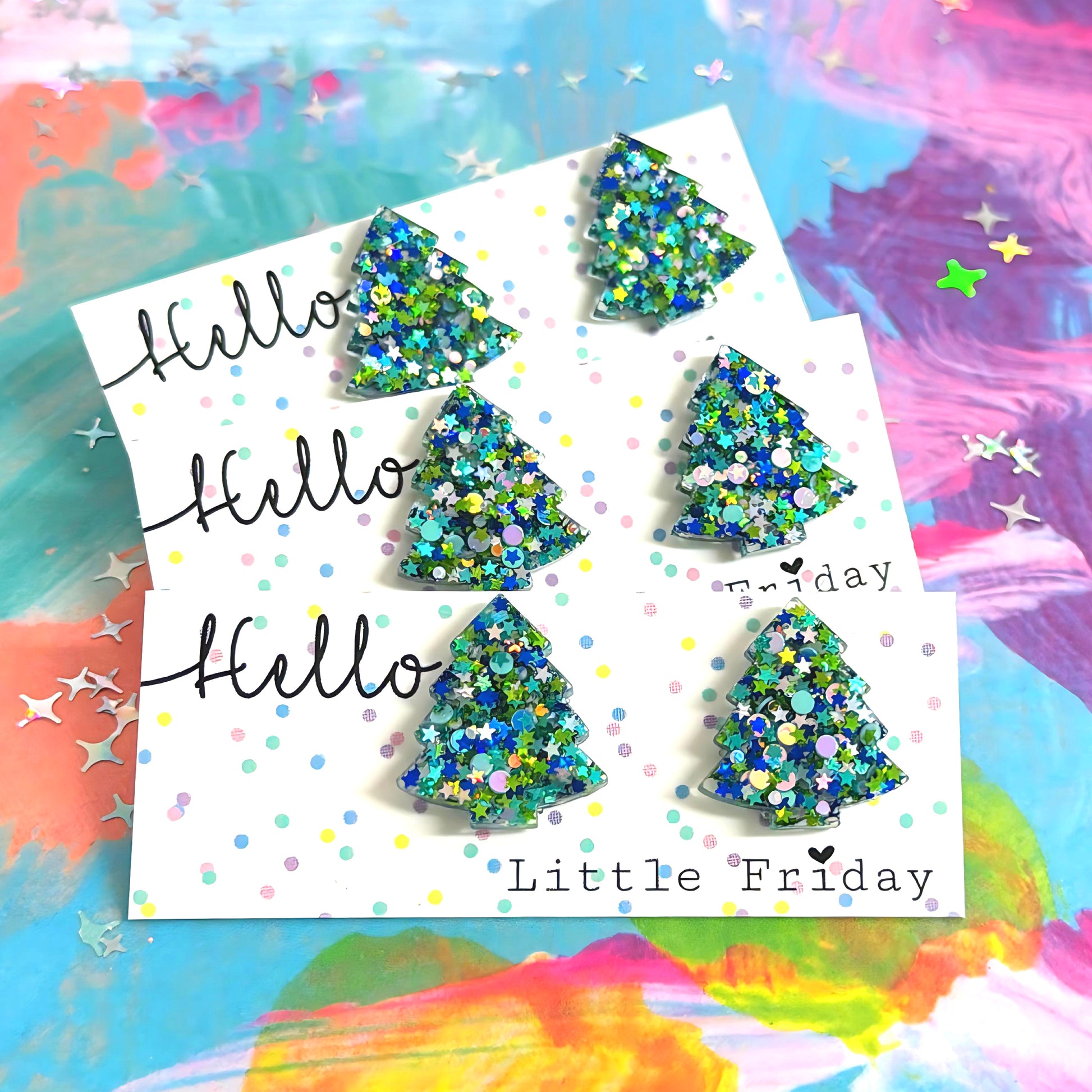 EMERALD STARDUST CHRISTMAS TREES : Handmade Resin STUD Earrings