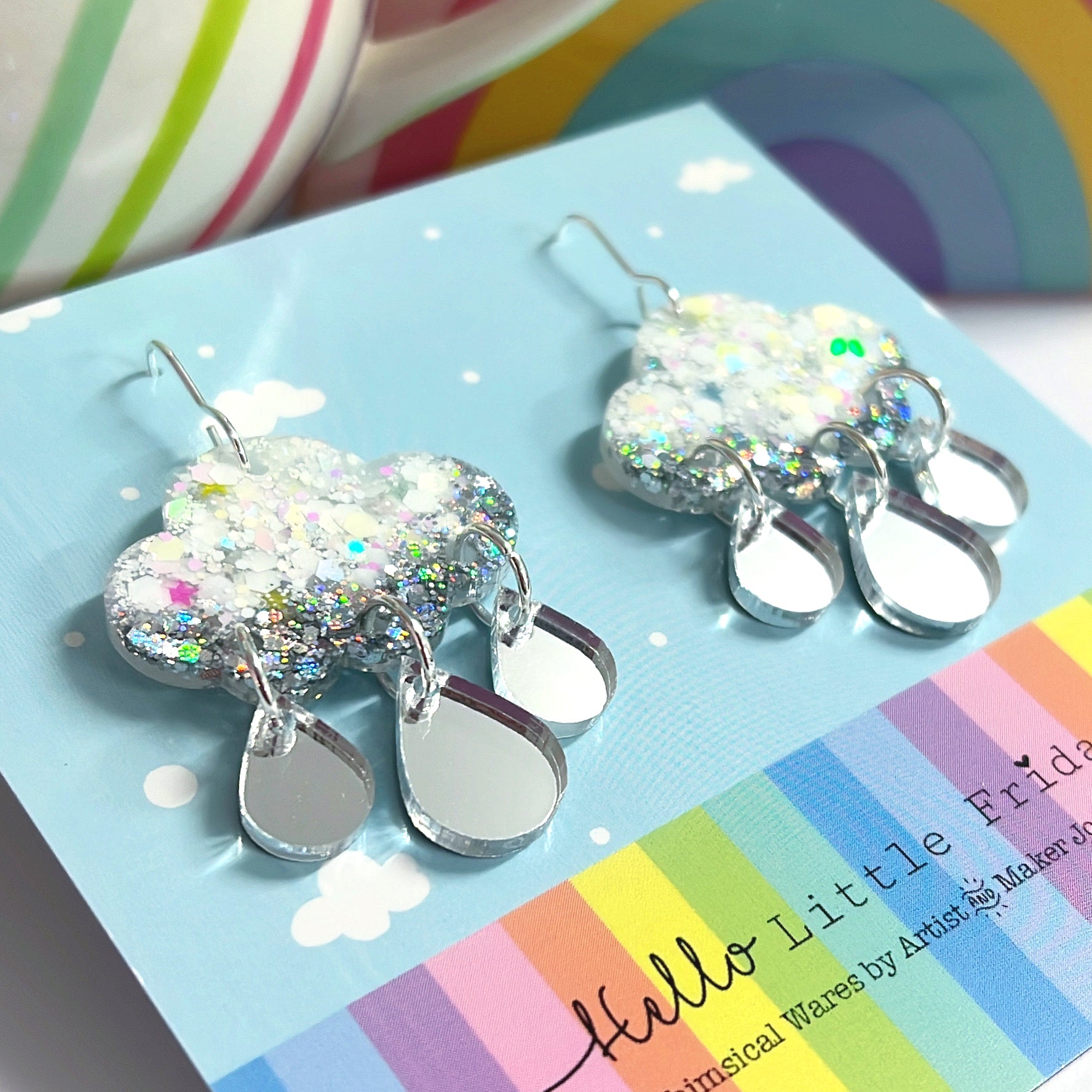 EVERY CLOUD HAS A SILVER LINING : Handmade Resin & Acrylic Drop Earrings