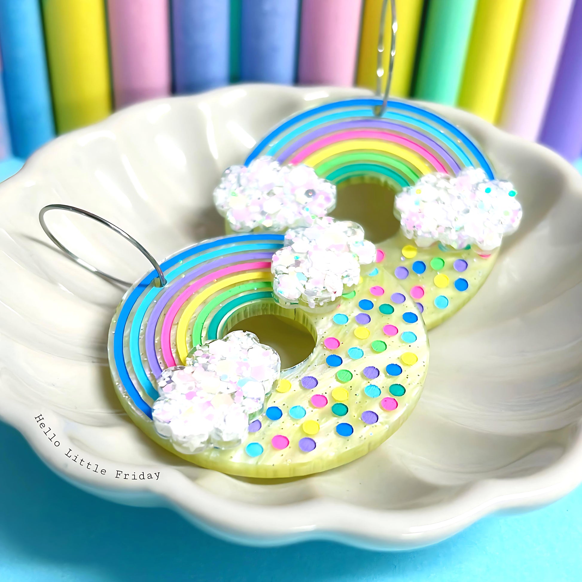 FAIRY BREAD DONUTS : BUTTER TWINKLE : Handpainted Acrylic & Cast Resin Drop Earrings