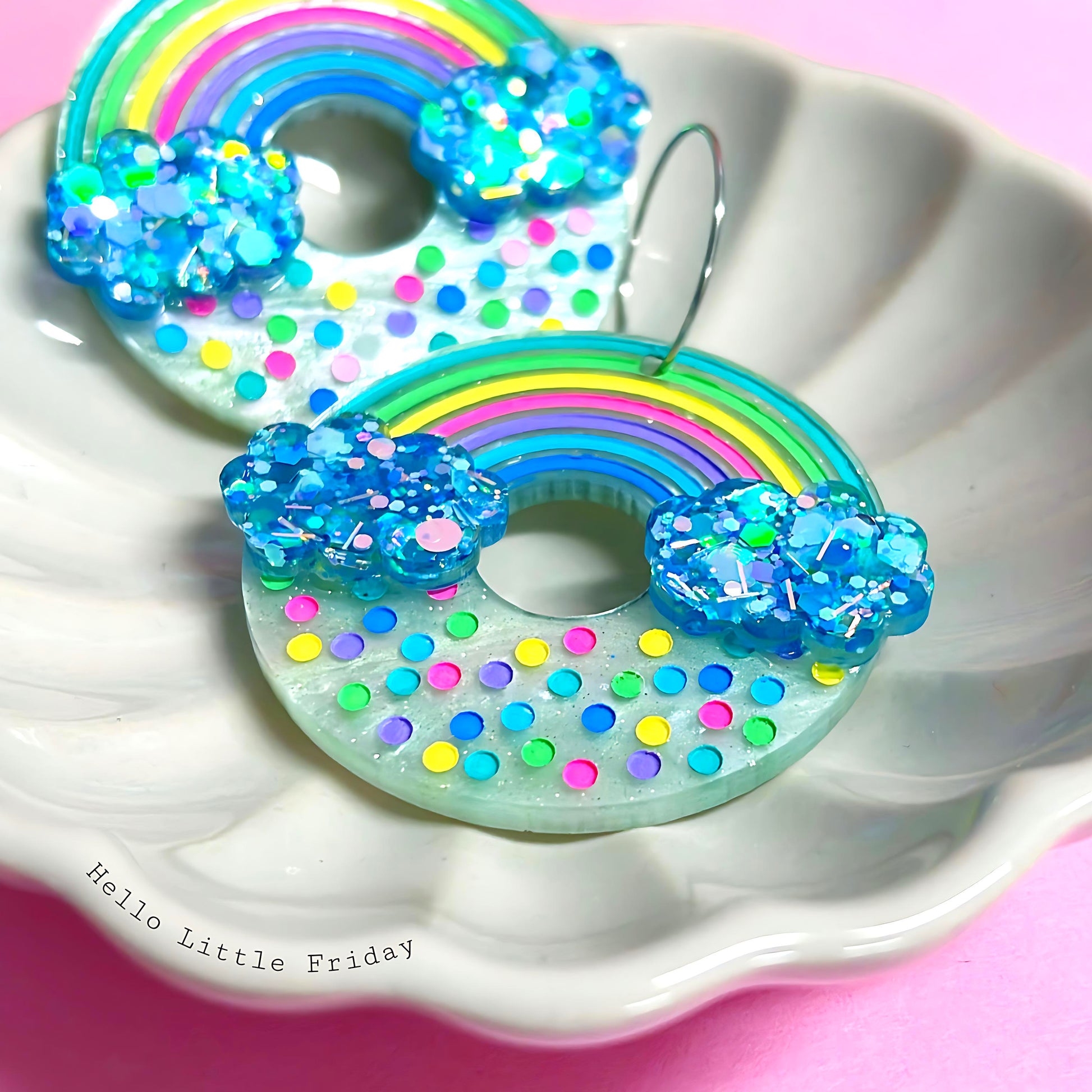 Each pair is individually handpainted & all of those gorgeous shimmering clouds are cast resin - handmade by me
