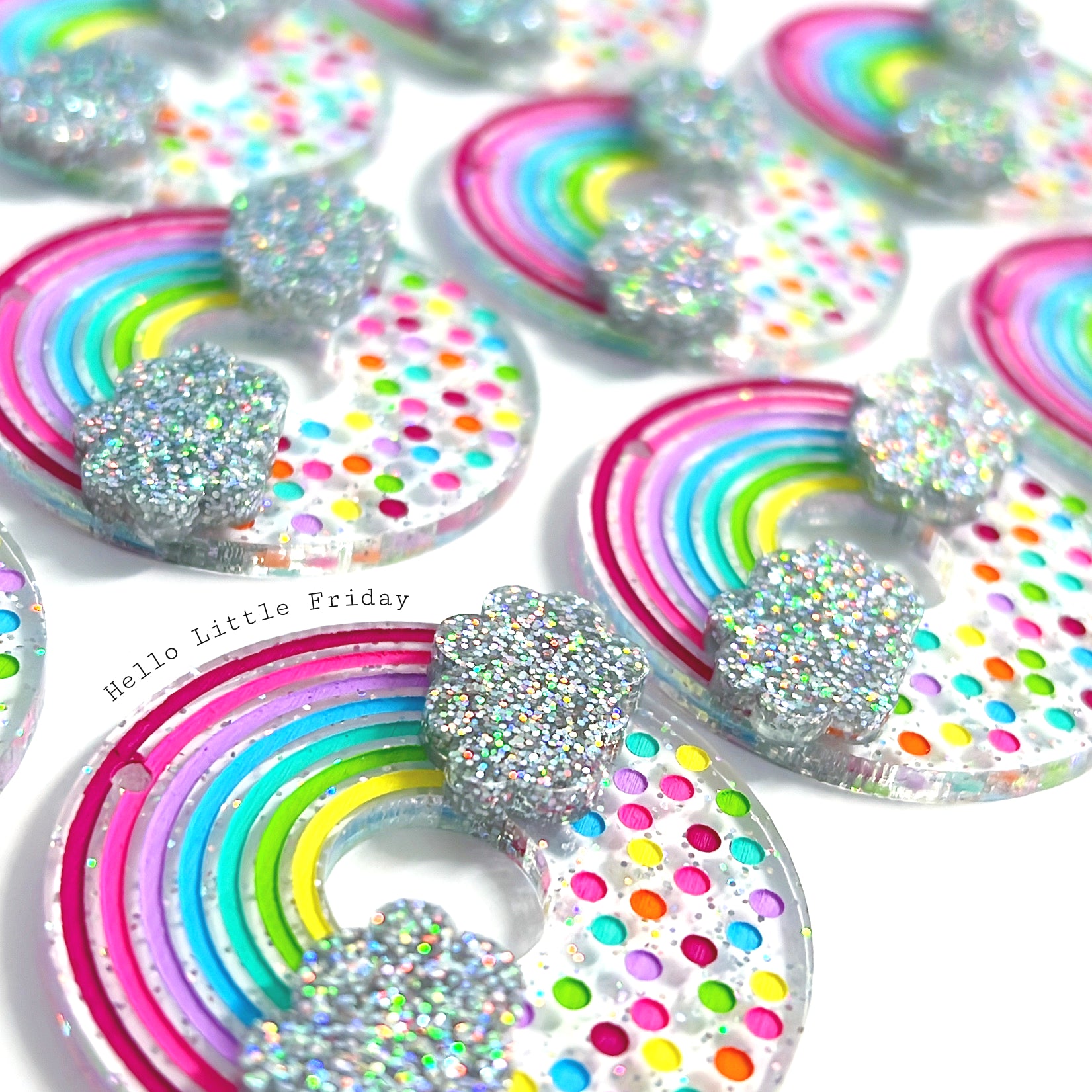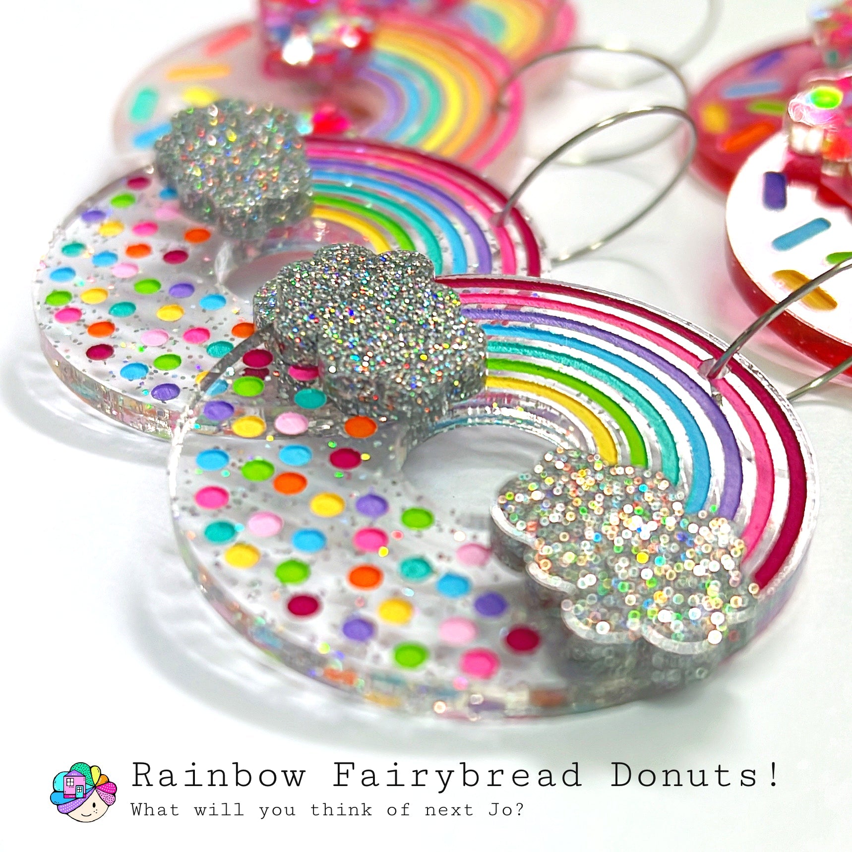 FAIRY BREAD DONUTS : SHIMMER TWINKLE : Handpainted Acrylic & Cast Resin Drop Earrings