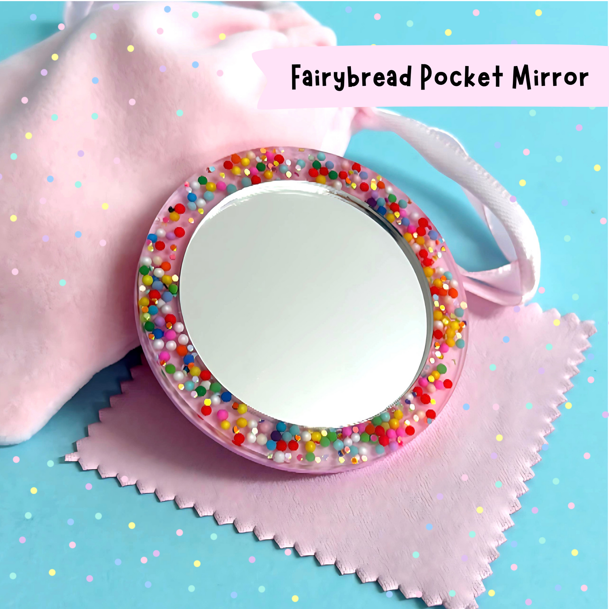 FAIRYBREAD Pocket Mirror with microfibre cleaning cloth & velveteen bag : Handmade Resin