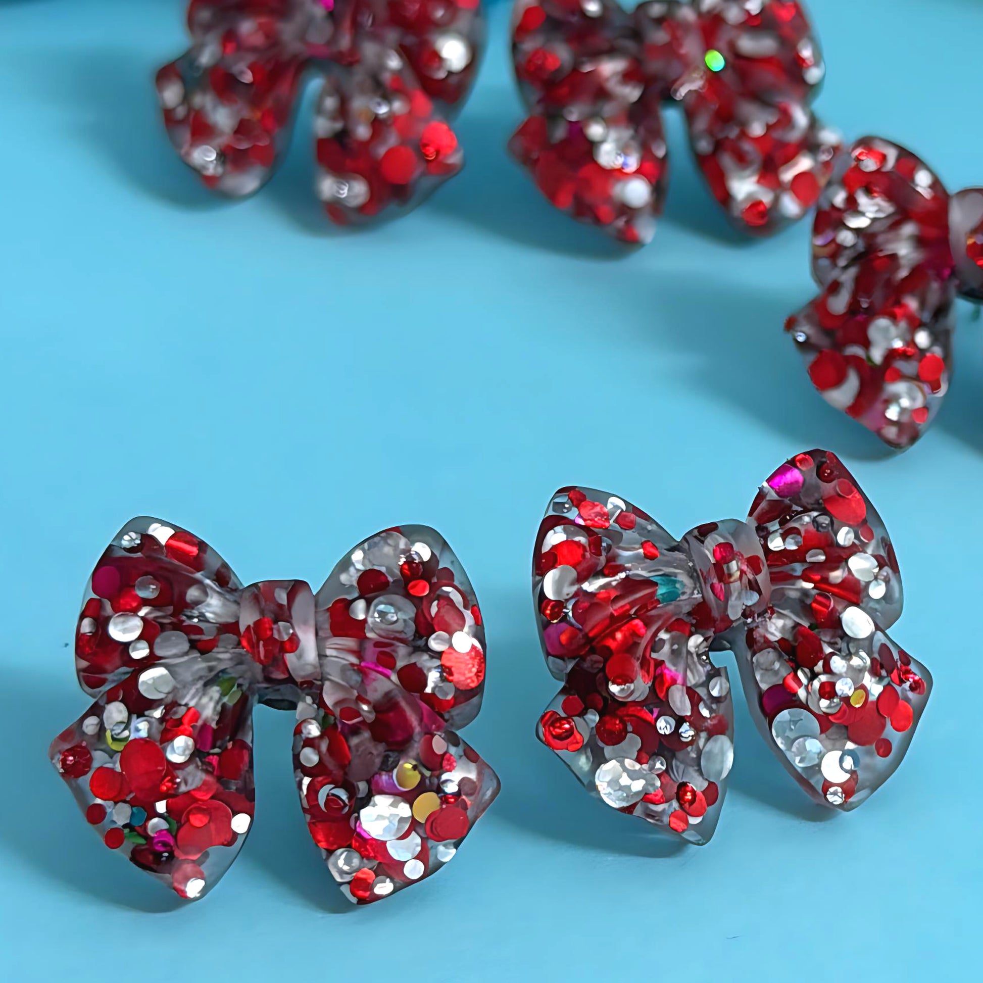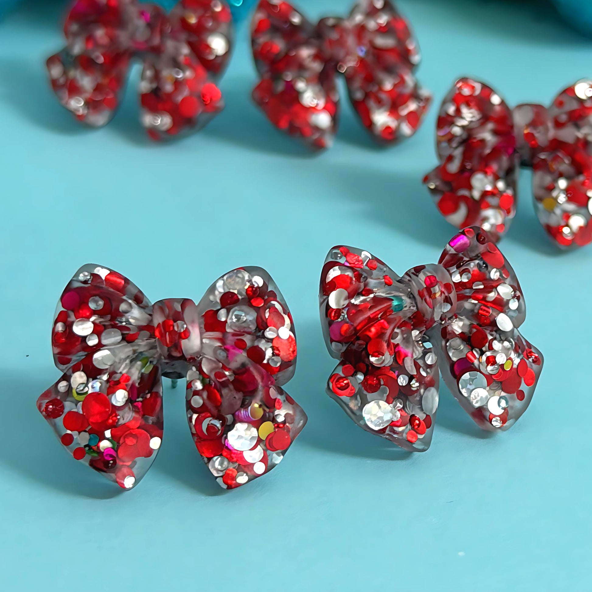 FESTIVE BOWS : RUBY CONFETTI : Handmade Resin Midi Stud Earrings