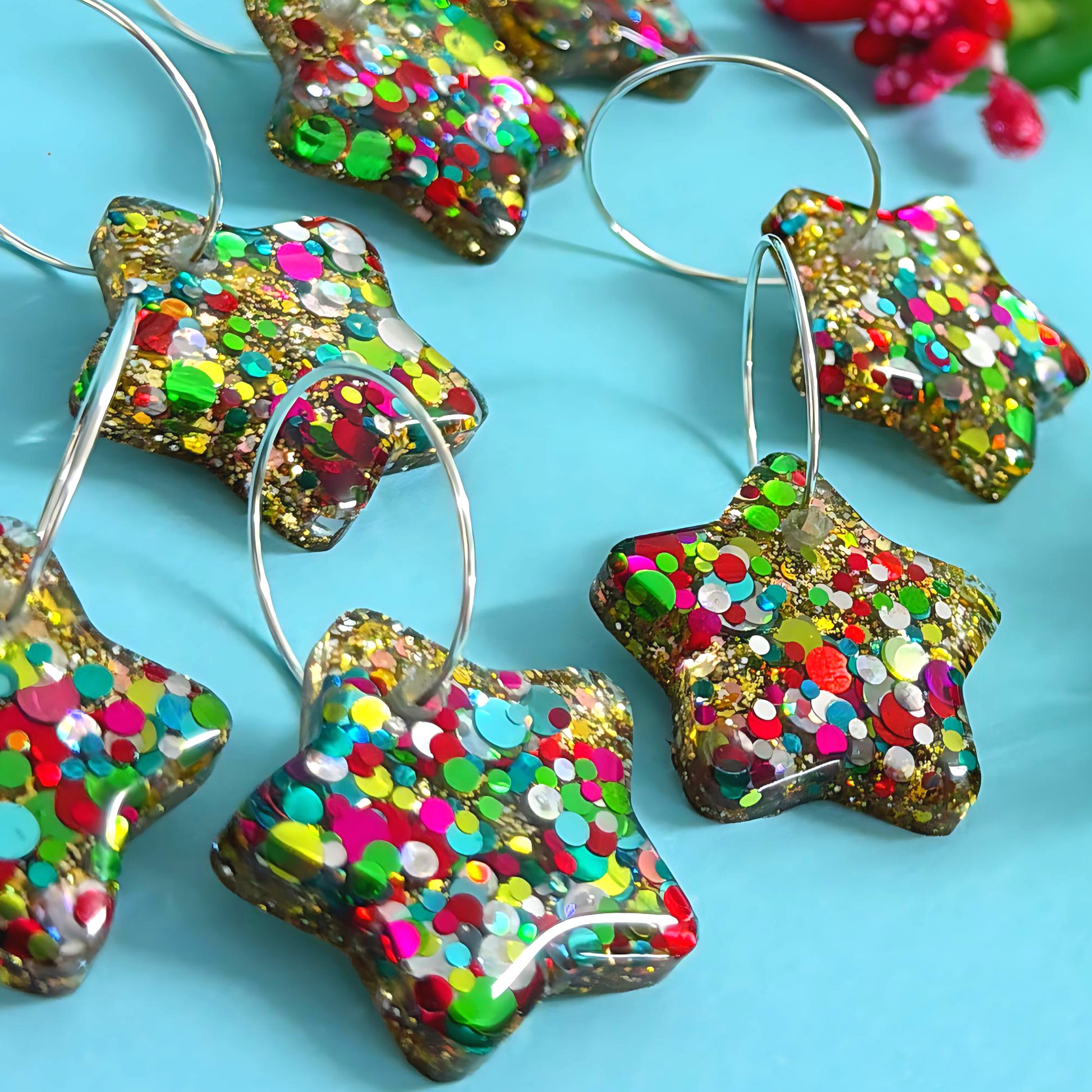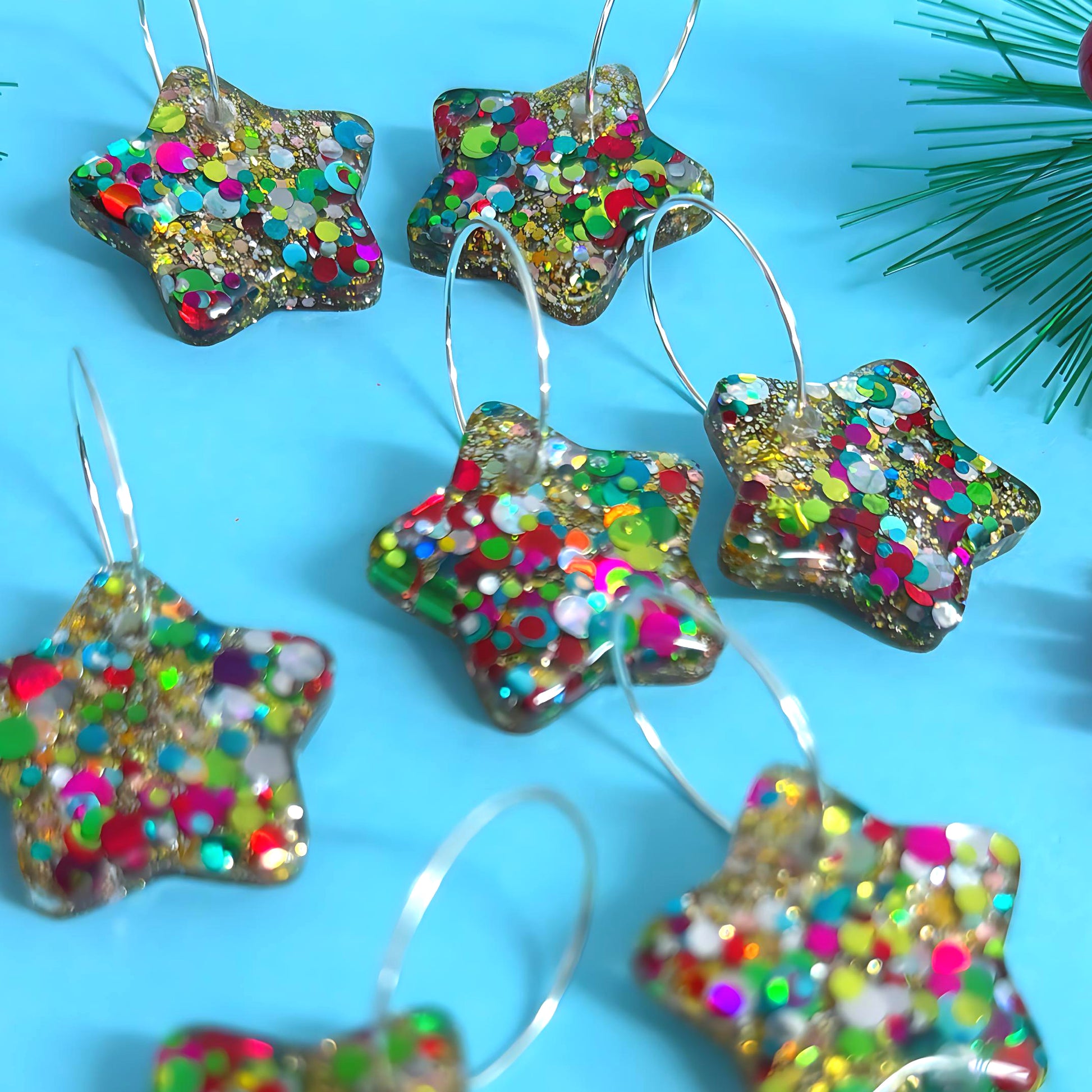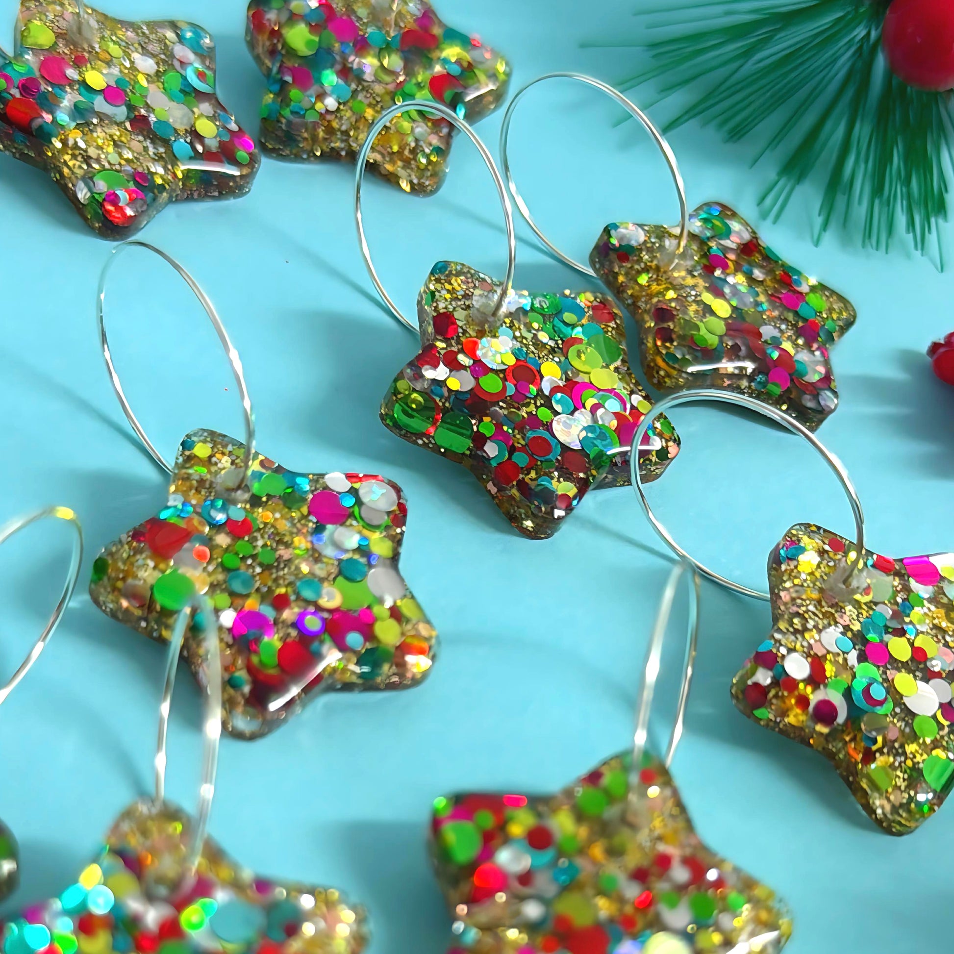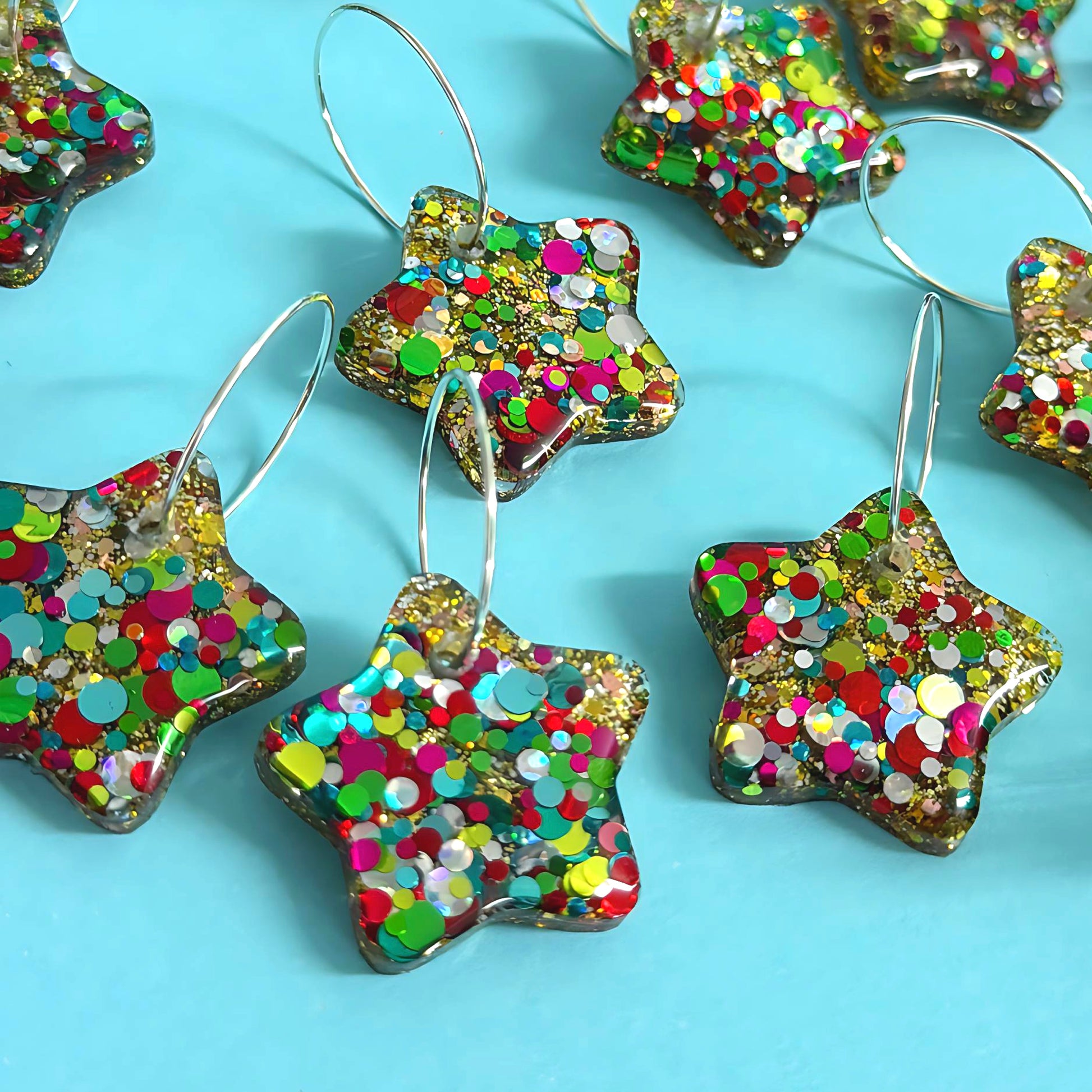 FESTIVE DISCO STARS : Handmade Resin DROP Earrings