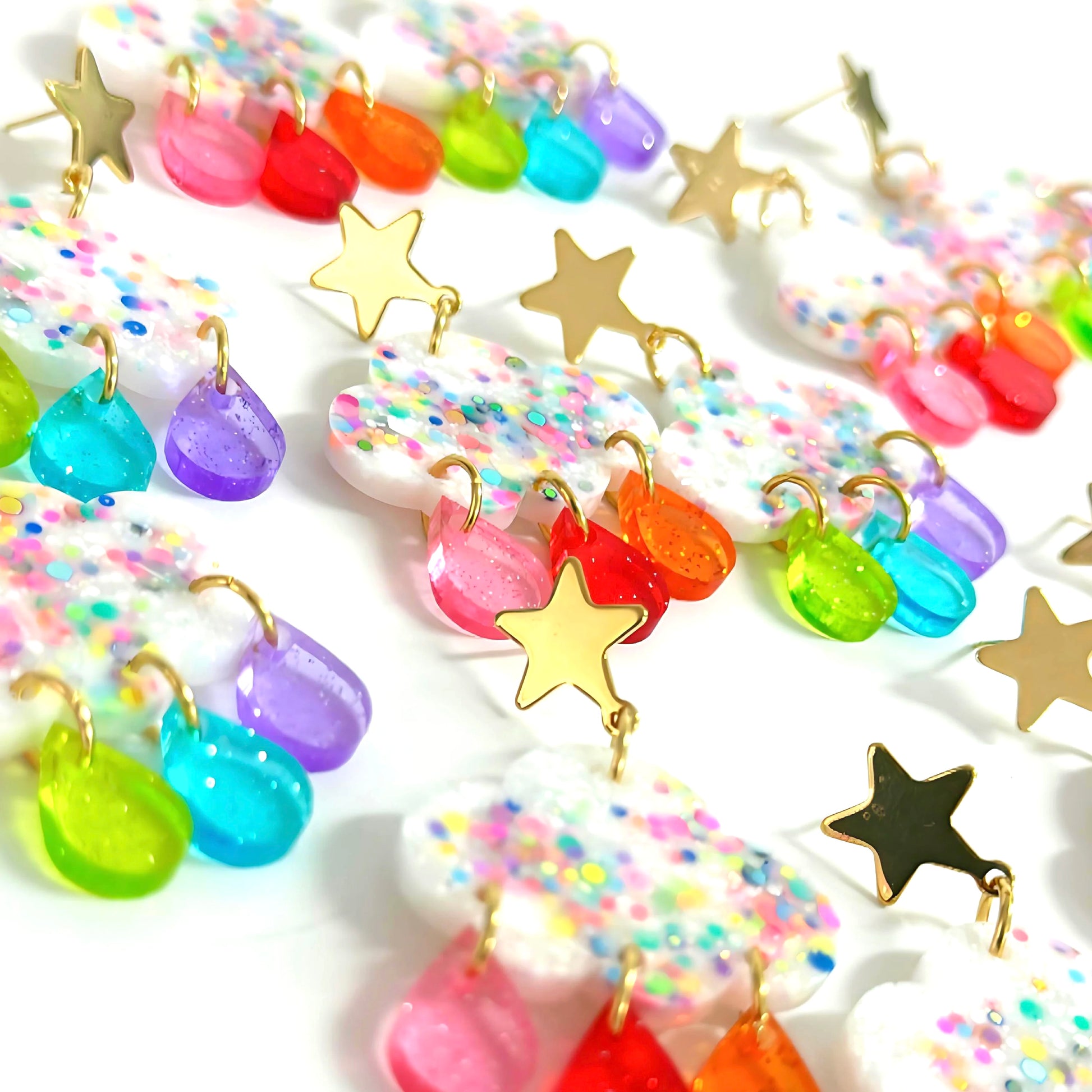 FUNFETTI CLOUDS : Asymmetric Pastel Rainbow l: Handmade Resin & Acrylic Drop Earrings