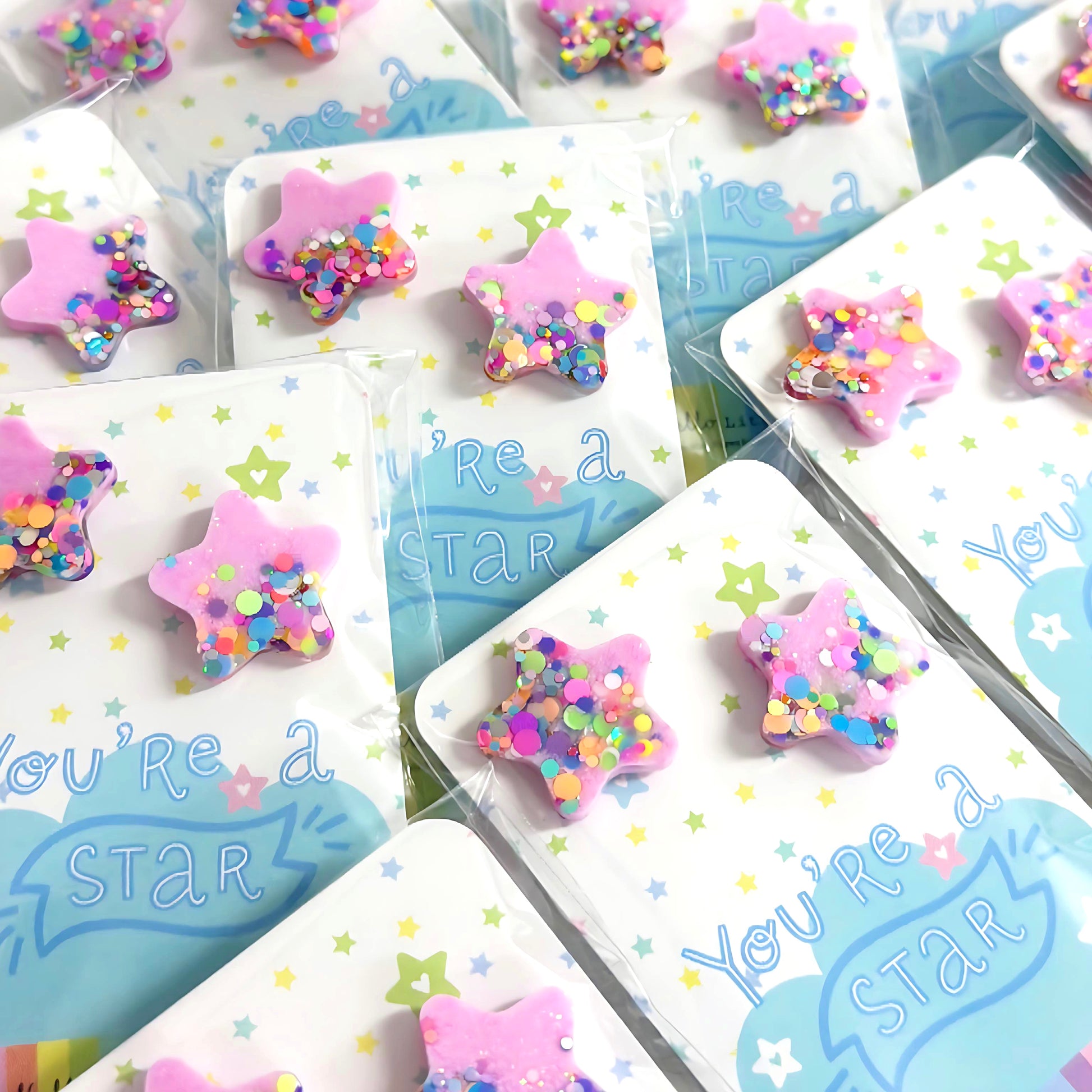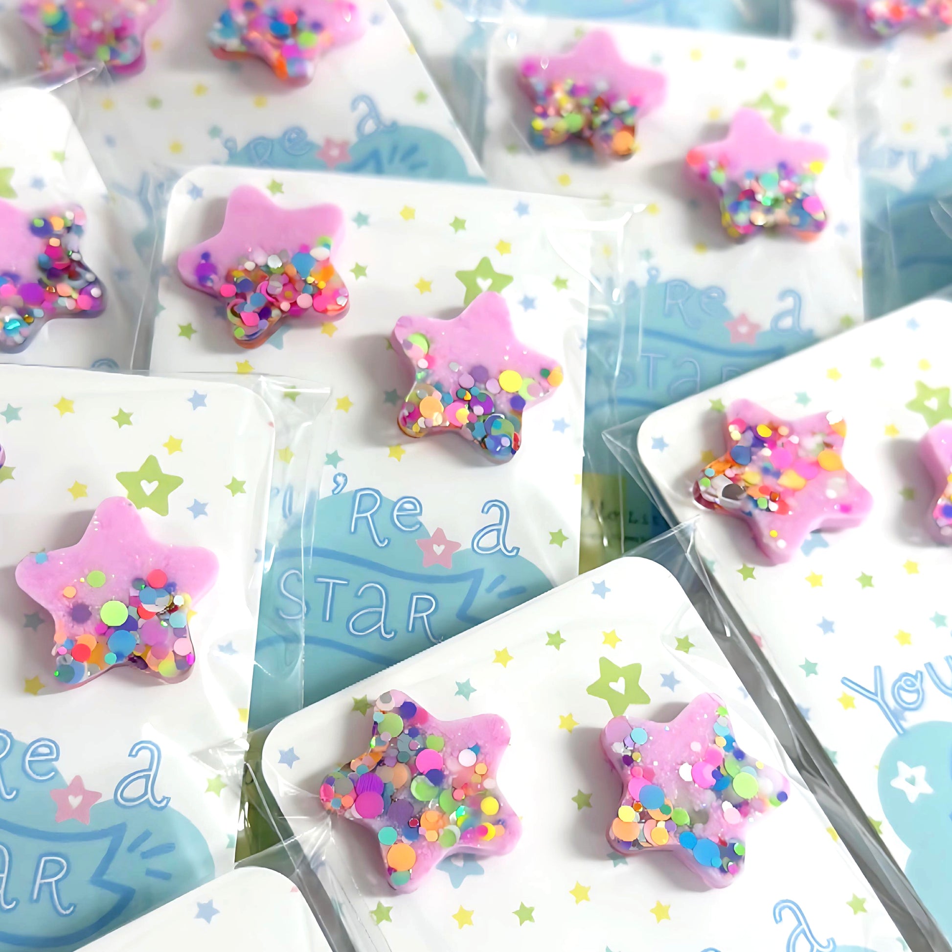 FUNFETTI MARSHMALLOW PINK STAR : Handmade Resin STUD Earrings
