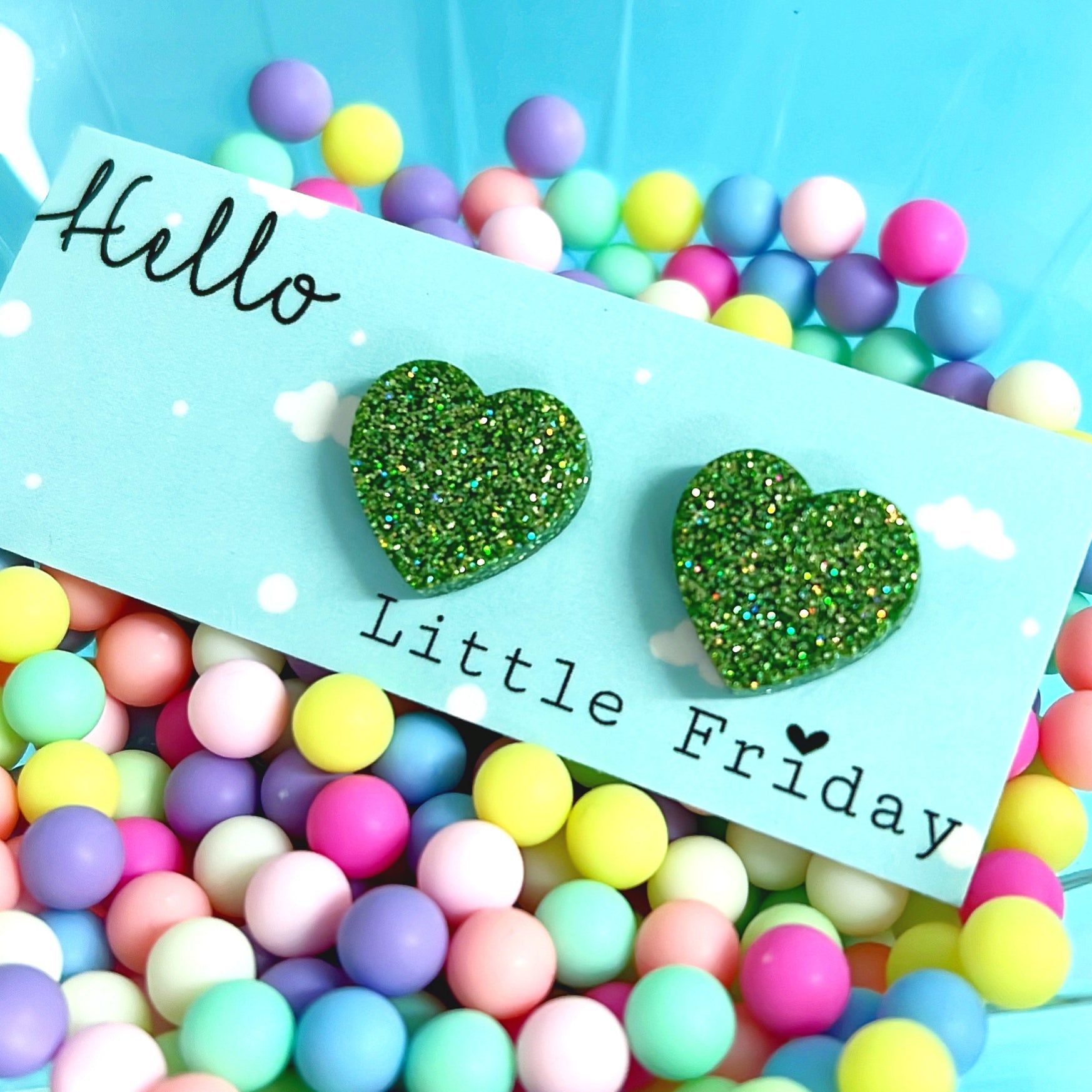 GLITTERBOMB HEARTS : Choose your colour : Handmade Resin STUD Earrings