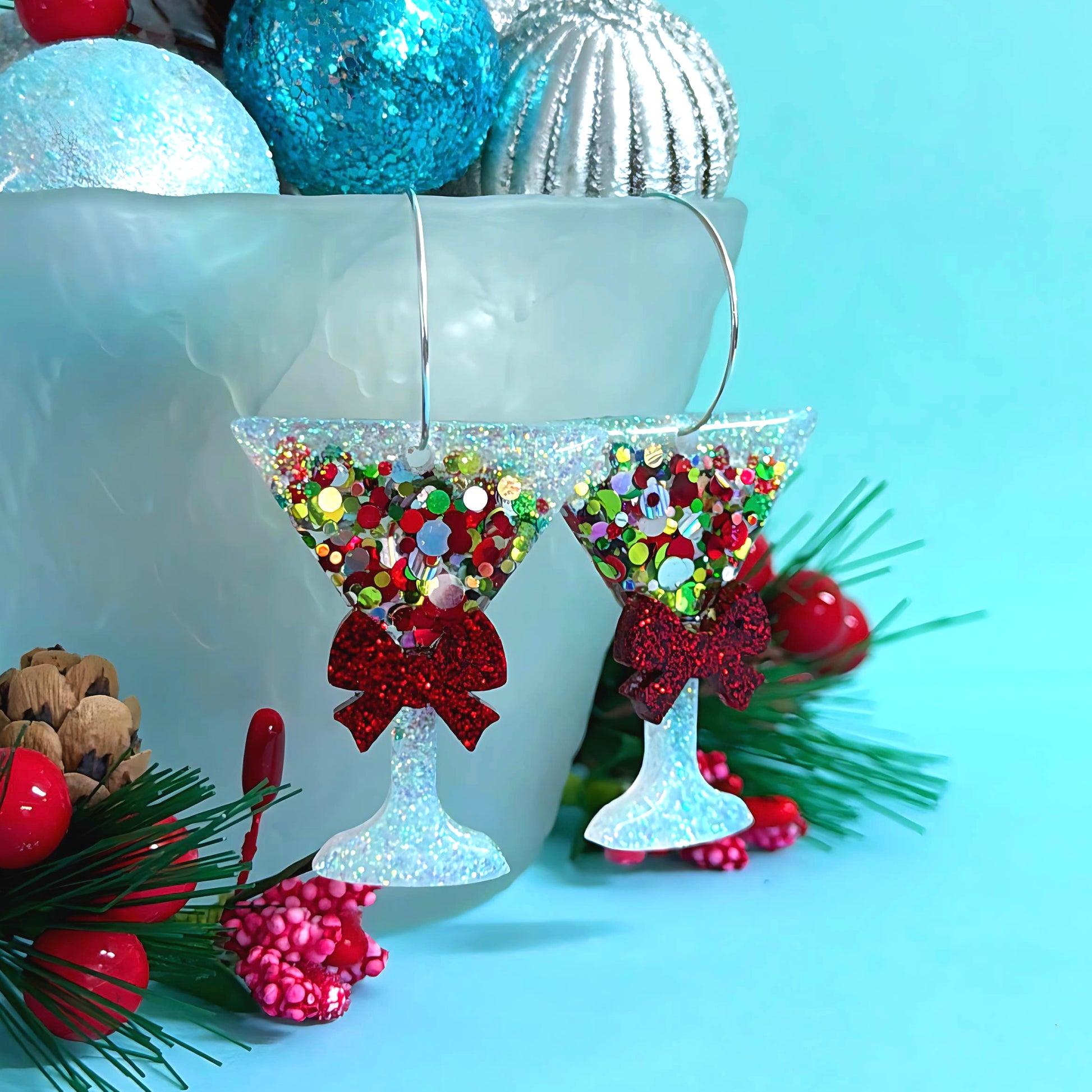 HELLO CHRISTMAS COCKTAILS : Handmade Resin & Acrylic DROP Earrings