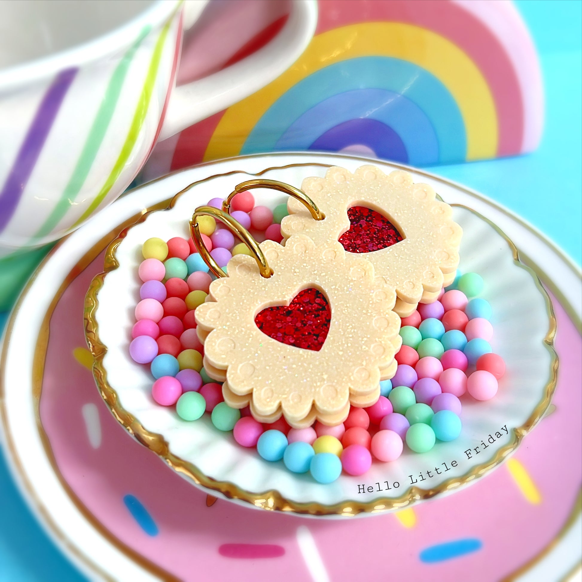 HELLO LITTLE BISCUITS : Heart Cookies : Handmade Resin DROP Earrings