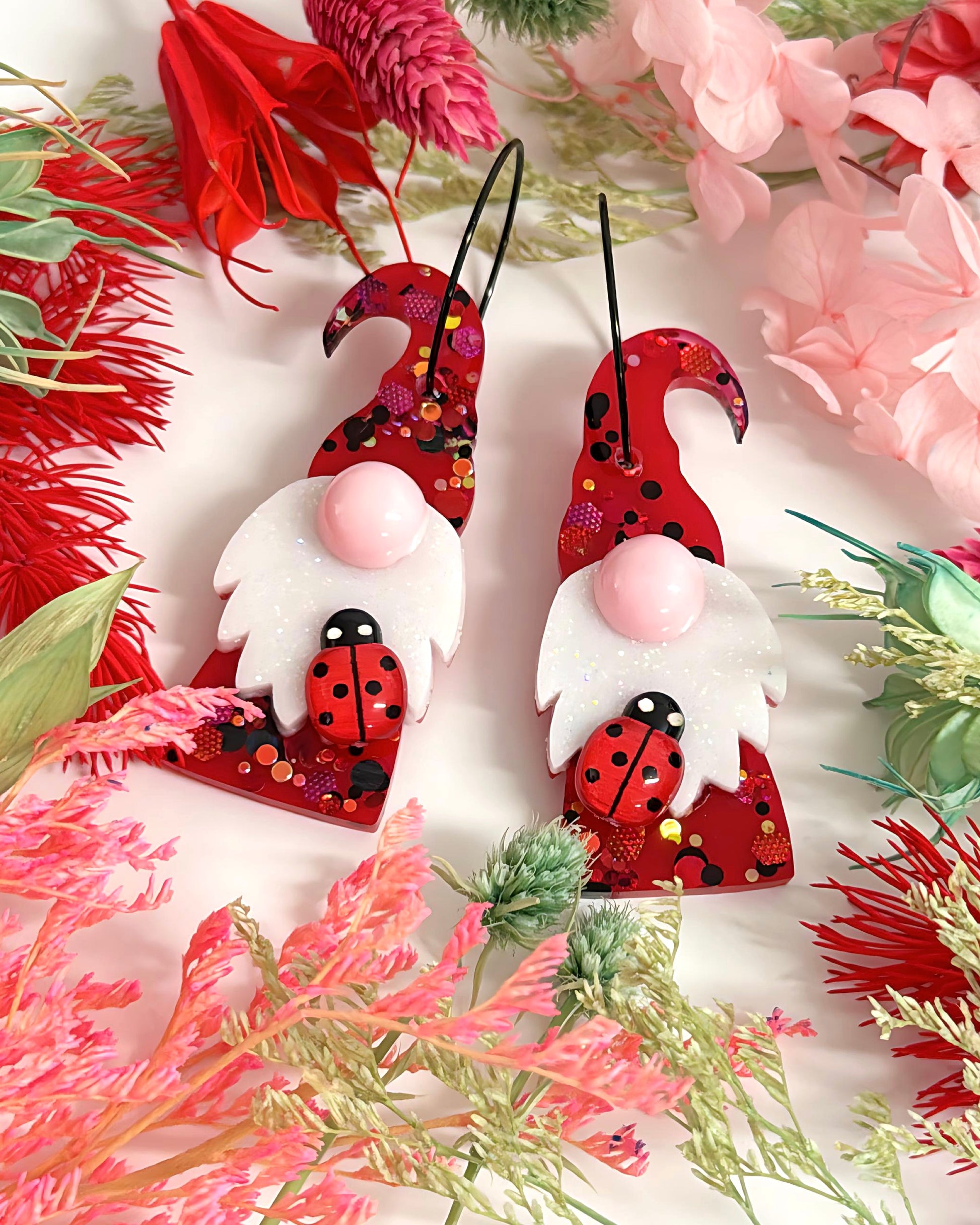 HELLO LITTLE GNOME : Ladybug Love : Handmade Resin DROP Earrings