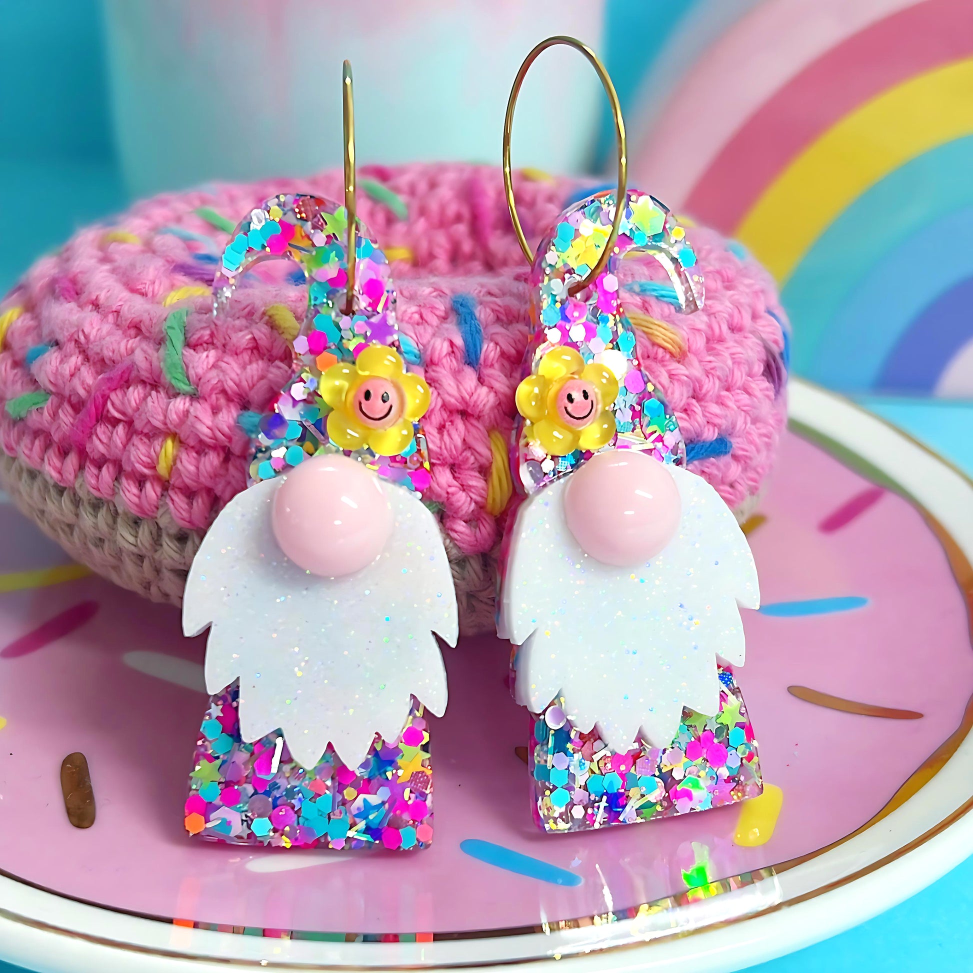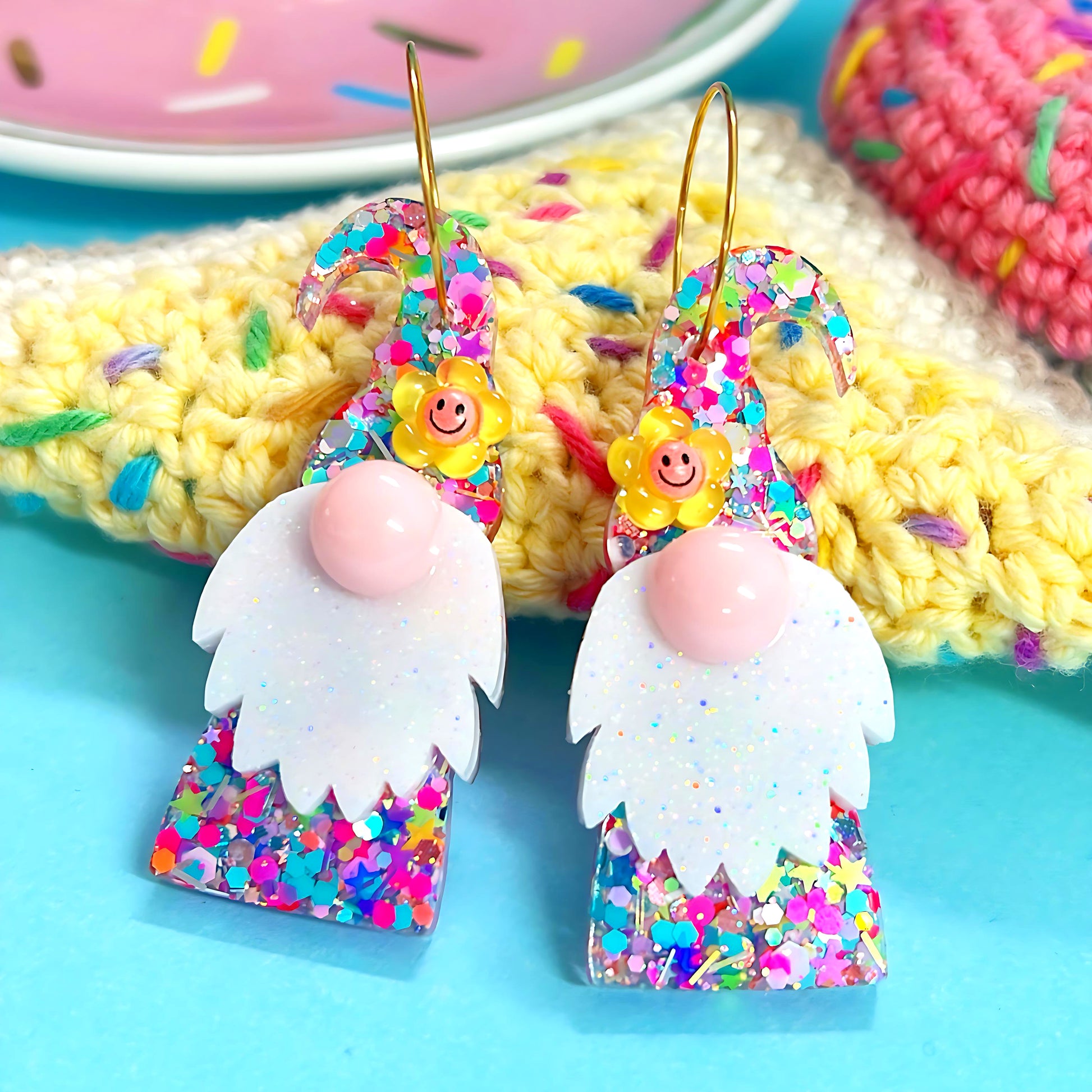 HELLO LITTLE GNOME : The Happiest Gnome : Handmade Resin DROP Earrings