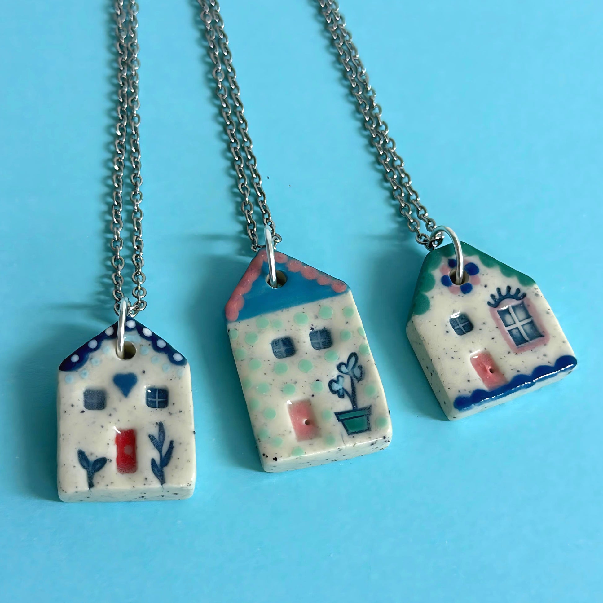 Hello Little HOMES 10 : Choose your Home : Handpainted One of a kind : Ceramic Home Pendants by Jo Kealley
