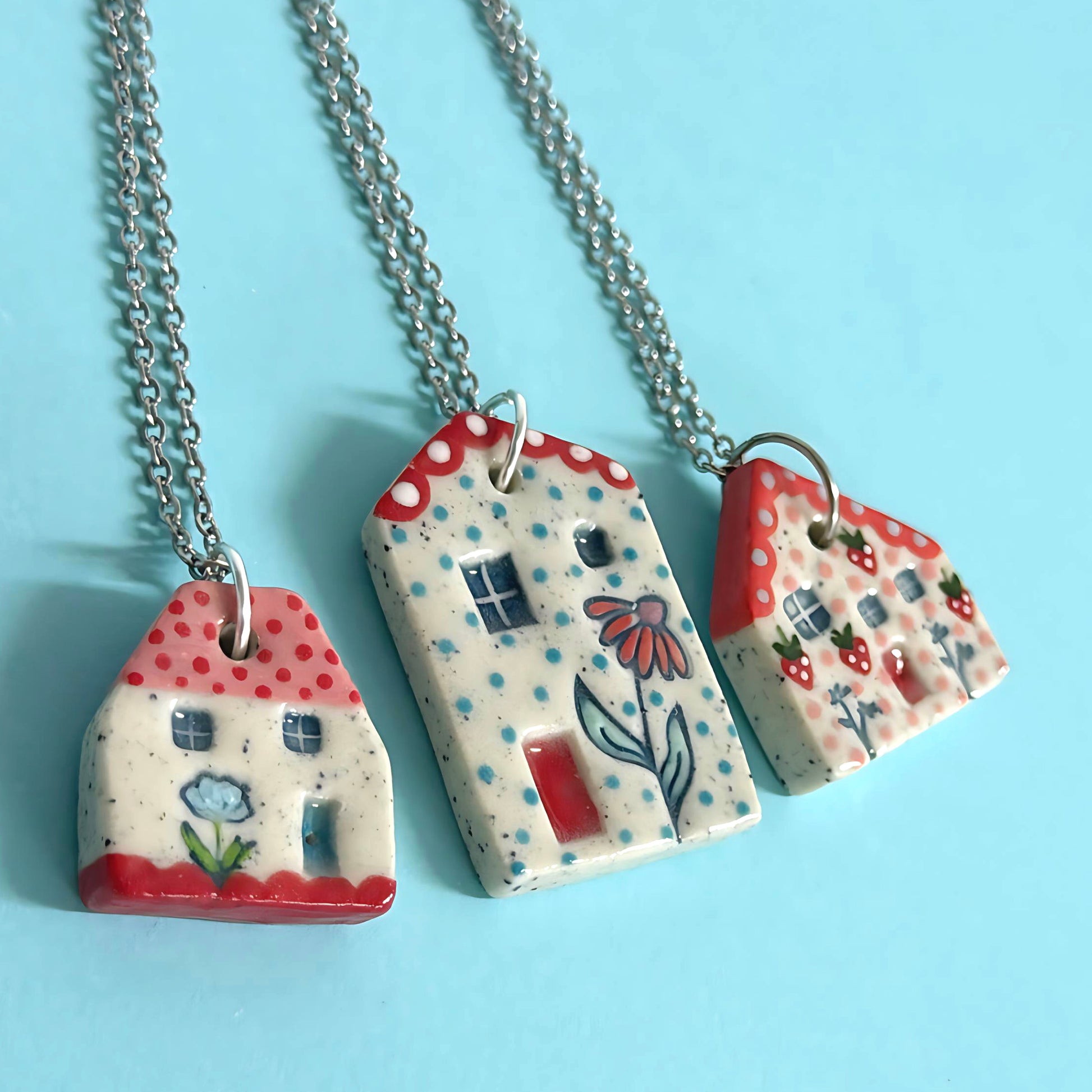 Hello Little HOMES 4 : Choose your Home : Handpainted One of a kind : Ceramic Home Pendants by Jo Kealley