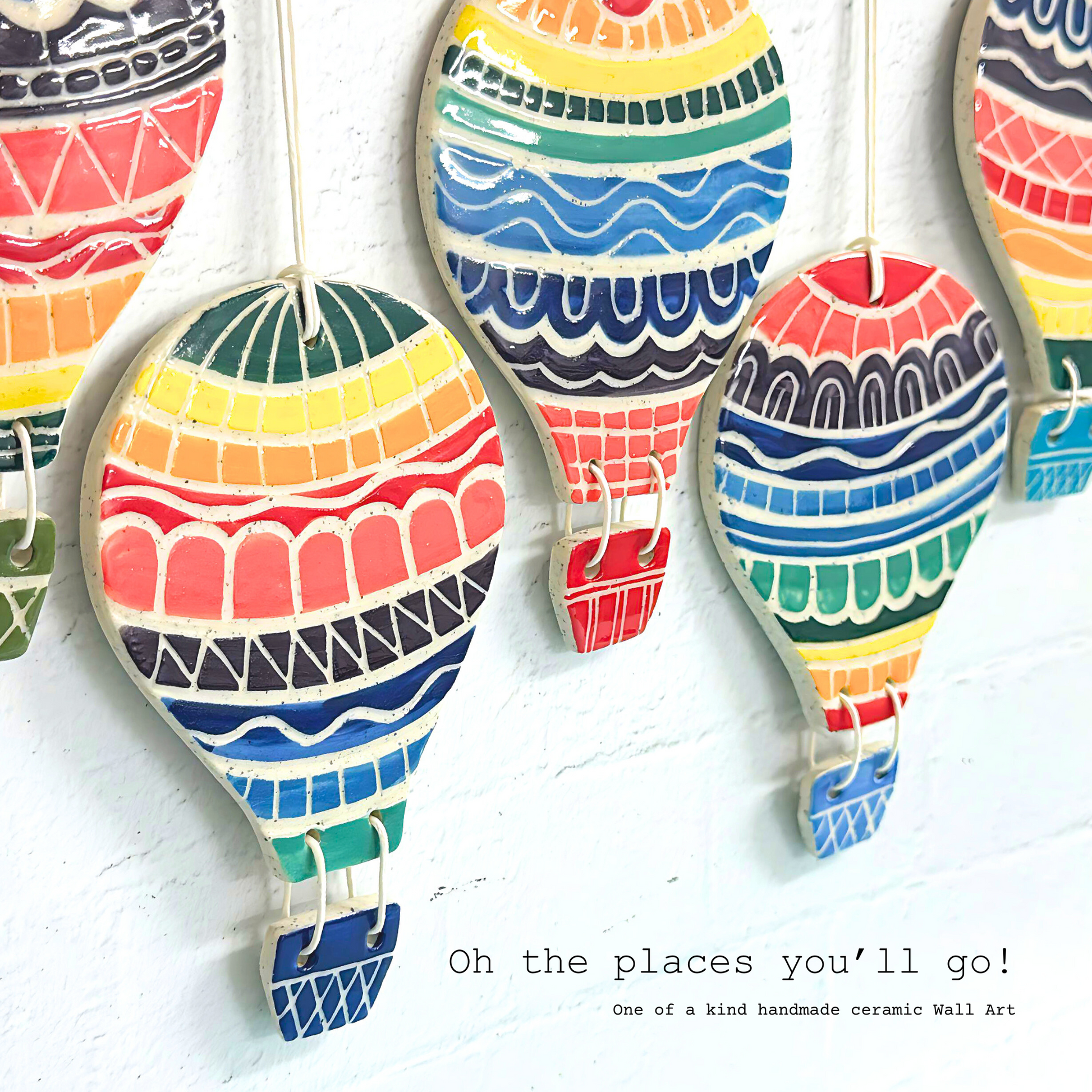 Hello Little HOT AIR BALLOON : Choose your design : Handpainted Ceramic Wall Plaque Artwork by Jo Kealley