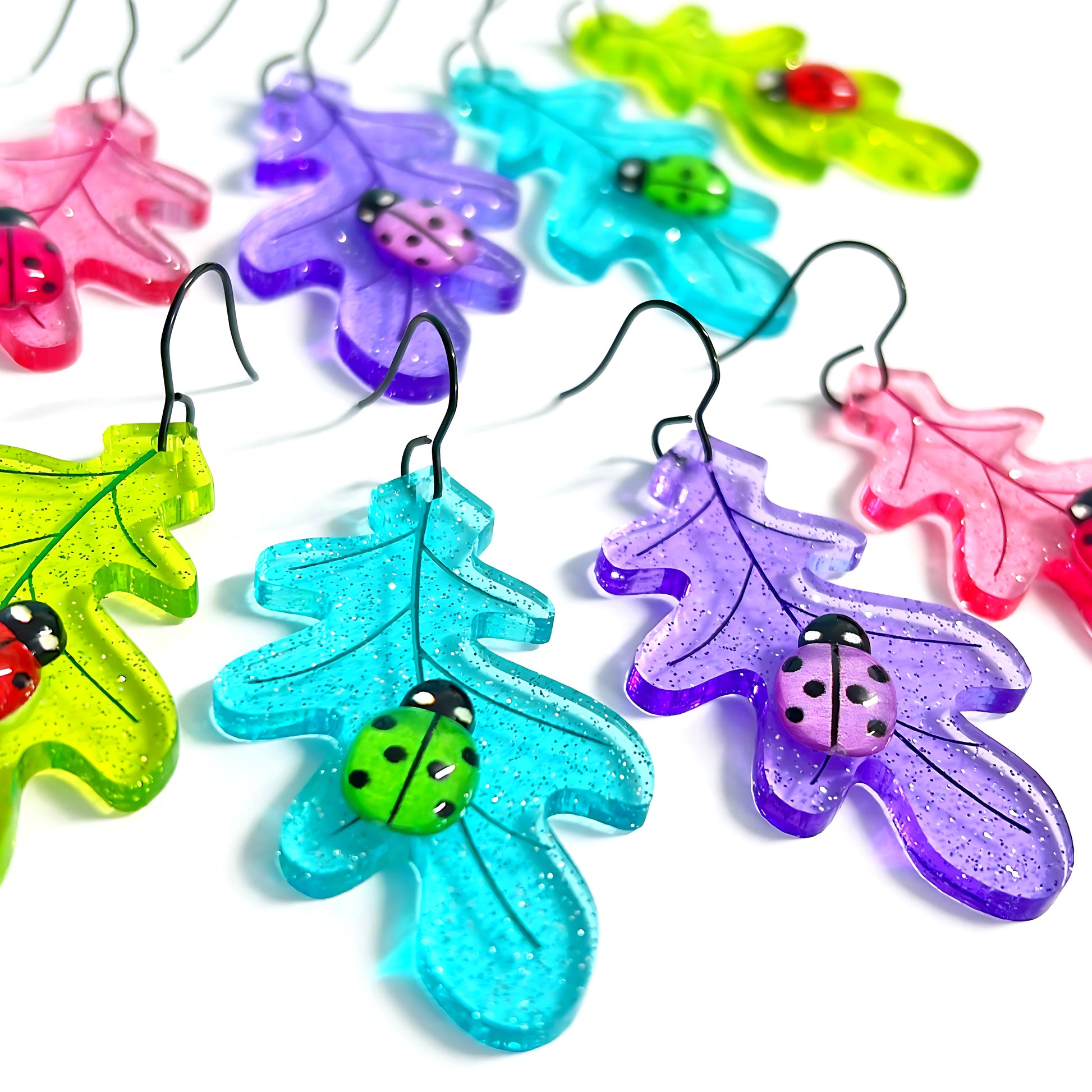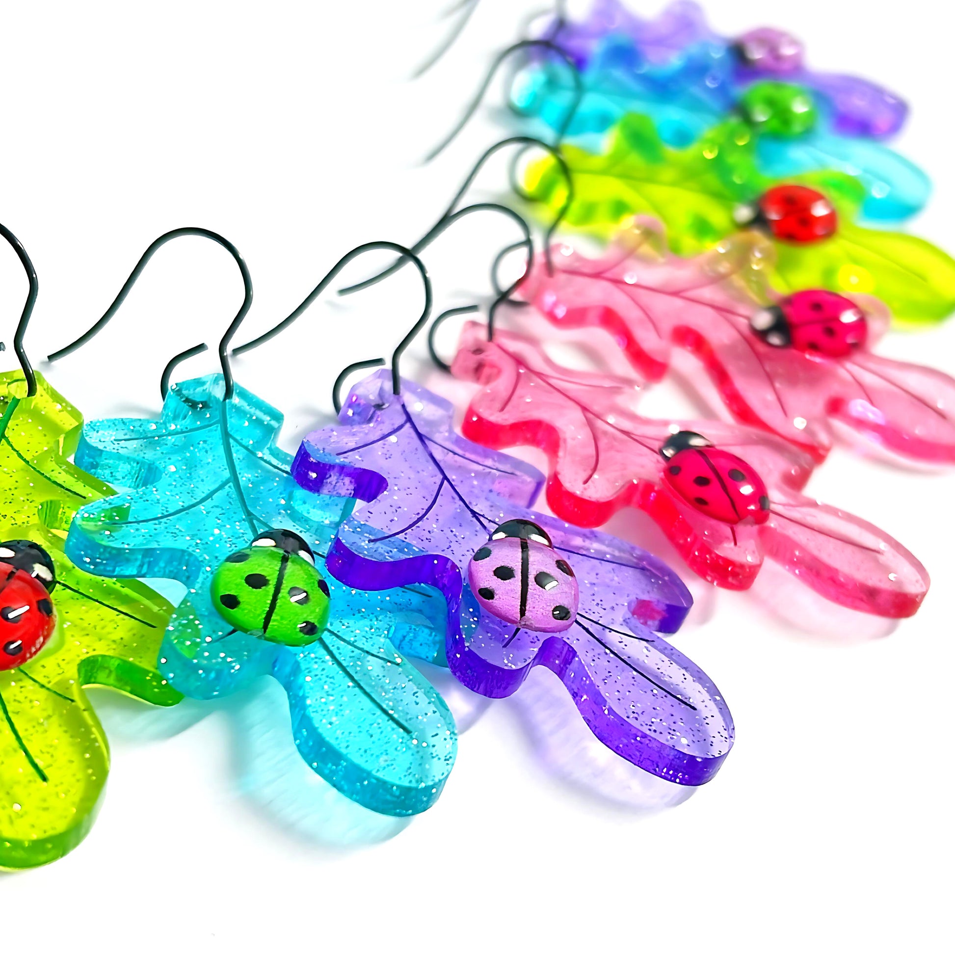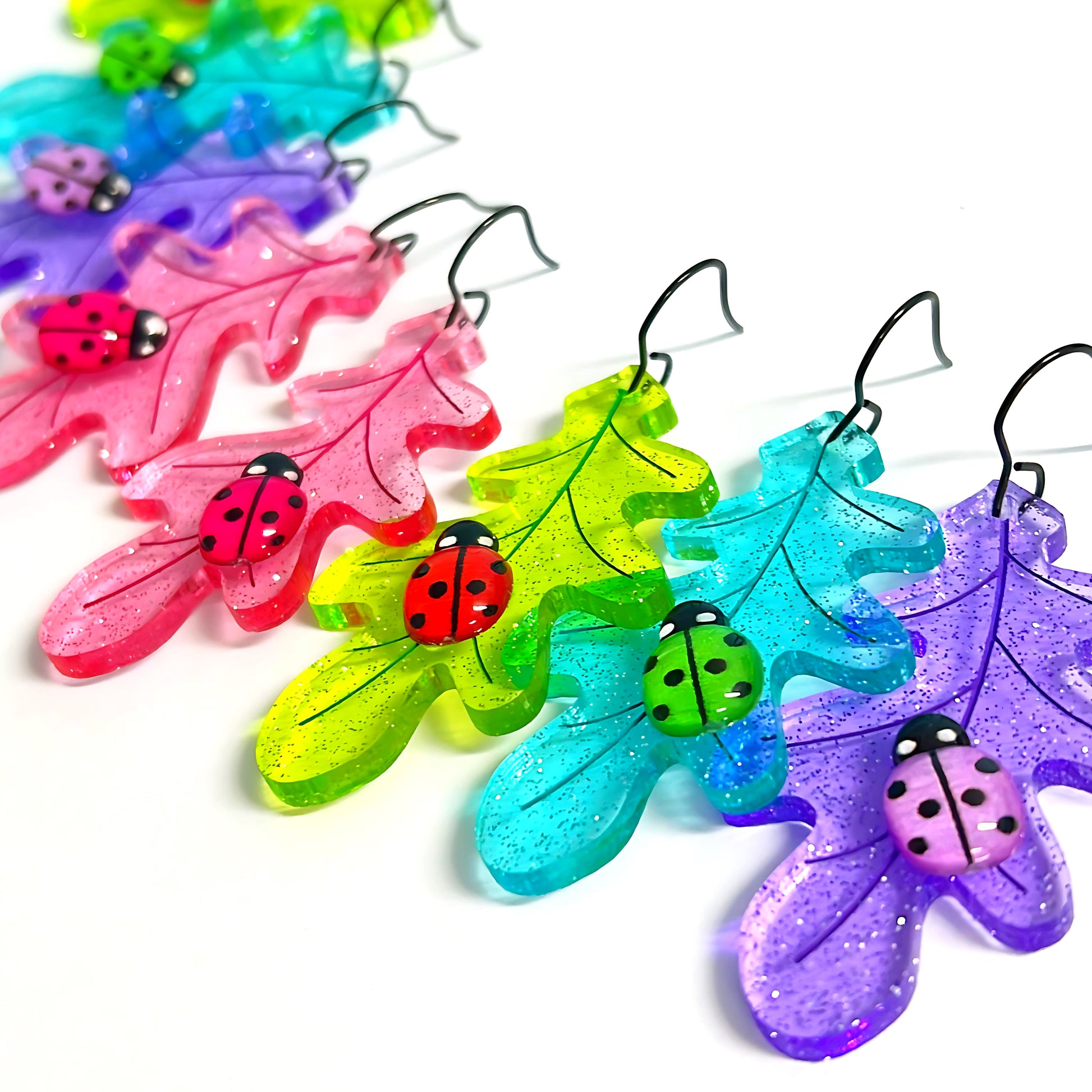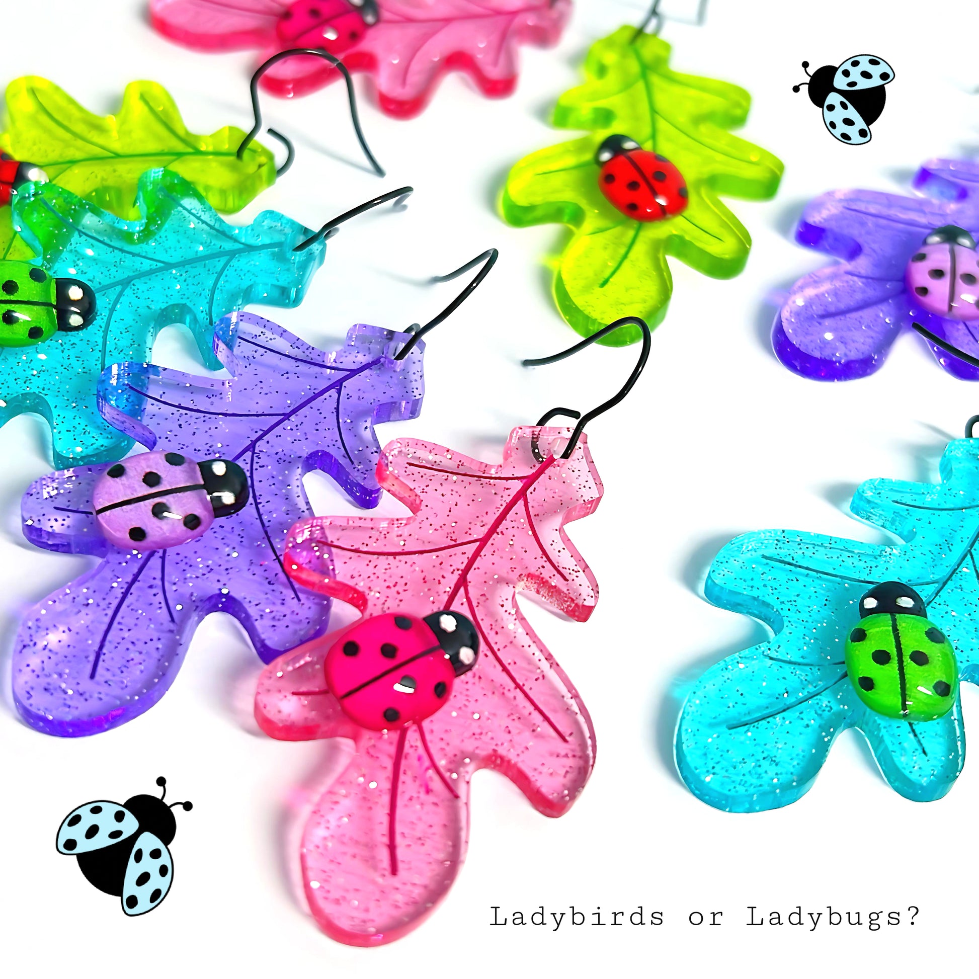 Hello LITTLE LADYBIRD : Choose your colour : Handmade Acrylic DROP Earrings